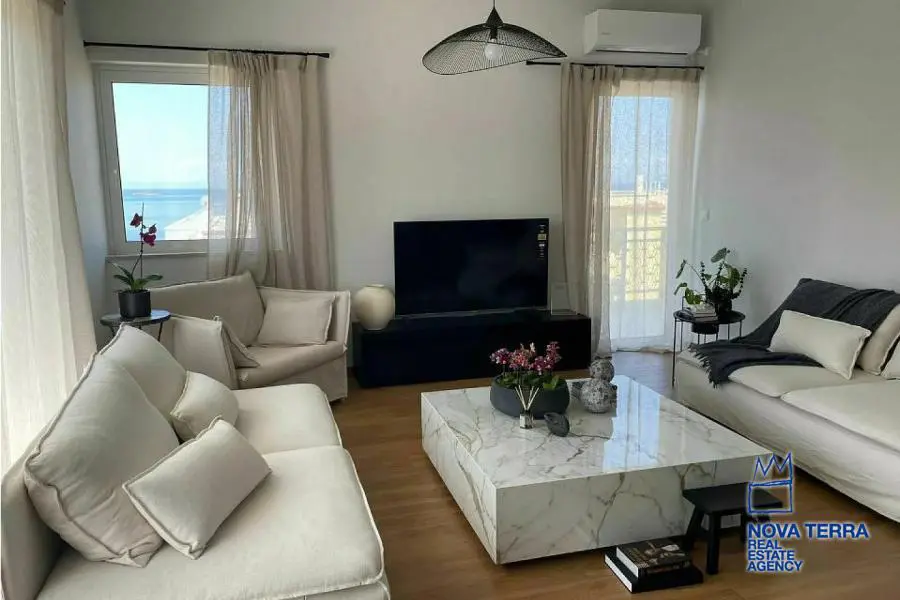 Ενοικιάζεται διαμέρισμα 97 τ.μ. στη Βούλα Κάτω, με θέα στη θάλασσα. Κατασκευή το 1993, ανακαινισμένο το 2022, αποτελείται από 2 δωμάτια, σαλόνι, κουζίνα, 2 μπάνια και βεράντα. Διαθέτει ασανσέρ, τζάκι, κλιματισμό, ηλιακό θερμοσίφωνα, πόρτα ασφαλείας και χρήση δώματος με στούντιο. Σε άριστη κατάσταση, με χώρο στάθμευσης και ενεργειακή κλάση Β. Κωδικός ακινήτου: 48075. Περισσότερες πληροφορίες στο www.nova-terra.gr.