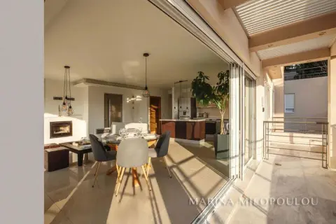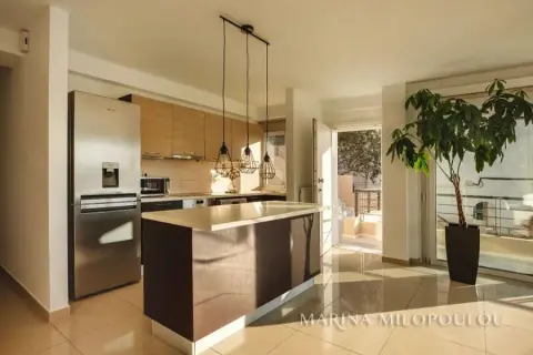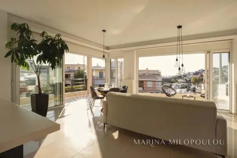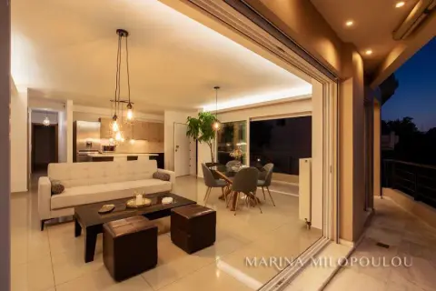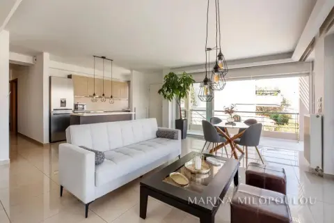 ΒΟΥΛΑ - Πανόραμα, Διαμέρισμα 110τμ, 1ου ορόφου, επιπλωμένο, νοτιοδυτικού προσανατολισμού με εξαιρετική θέα. Αποτελείται από ενιαίο χώρο υποδοχής, open plan κουζίνα, 2 υ/δ (το 1 master) και 1 επιπλέον μπάνιο. Είναι smart Home και διαθέτει ολοκαίνουργια επίπλωση, Wi-Fi, συναγερμό συνδεδεμένο με εταιρεία φύλαξης, εξοπλισμένο με όλα τα οικιακά σκεύη, ψυγείο, πλυντήριο / στεγνωτήριο, πλυντήριο πιάτων, τηλεοράσεις smart, πόρτα ασφαλείας, βεστιάριο, αυτονομία πετρελαίου, ενεργειακό τζάκι, κεντρικό κλιματισμό ψύξη/θέρμανση, δύο εισόδους γυμναστήριο κοινόχρηστο,αποθήκη εσωτερική, 1 θέση στάθμευσης κλειστή. Χωρίς κοινόχρηστα. Αποτελεί μέρος 3όροφου κτιρίου, 3ων κατοικιών, 2 χλμ από την αγορά-εστιατόρια της Βούλας, 3χλμ από την Β' πλαζ Βούλας, 4 χλμ από τον εμπoρικό ιστό της Γλυφάδας.