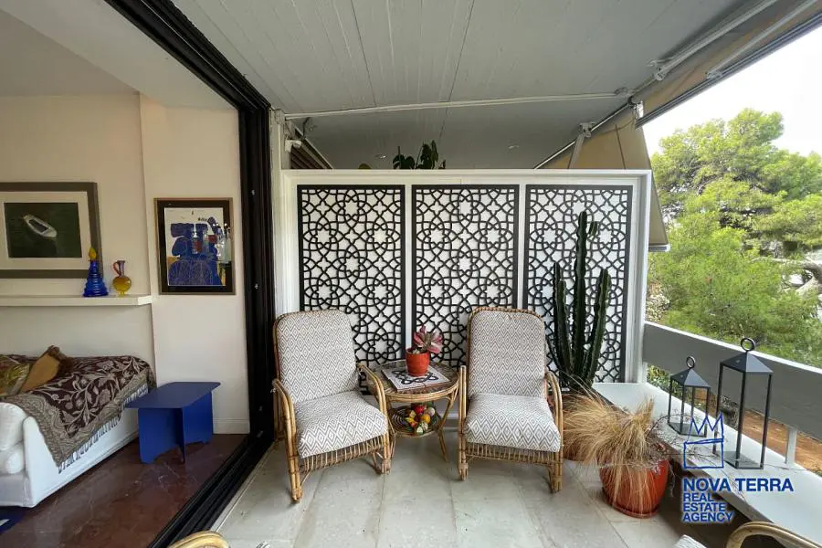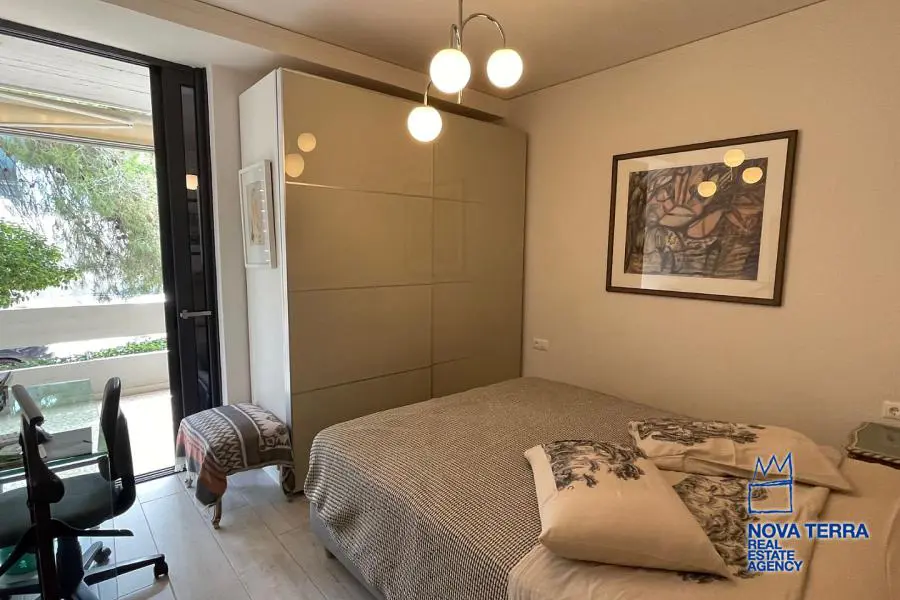 Ενοικιάζεται πολυτελώς επιπλωμένο διαμέρισμα υπερυψωμένο ισογείου στη Βουλιαγμένη στο κέντρο της πόλης. Έχει επιφάνεια 80 τ.μ. και κατασκευάστηκε το 1990, ενώ ανακαινίστηκε το 2022. Διαθέτει 2 δωμάτια, βεράντα, κουζίνα, μπάνιο και σαλόνι. Είναι πλήρως επιπλωμένο και διαθέτει πλακάκια στα δάπεδα, κλιματισμό, διπλά τζάμια και κουφώματα αλουμινίου. Βρίσκεται σε οικιστική ζώνη και διαθέτει πολυτελή χαρακτηριστικά, όπως πόρτα ασφαλείας, συναγερμό και τέντες. Είναι φωτεινό με ενεργειακή κλάση Γ. Προσφέρεται και για βραχυπρόθεσμη μίσθωση. Από αρχές Οκτώβρη διαθέσιμο. Κωδικός ακινήτου: 48109. Επισκεφτείτε την ιστοσελίδα μας για περισσότερες πληροφορίες: www.nova-terra.gr.