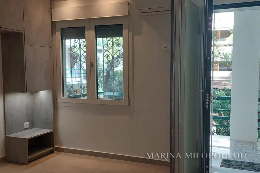 ΒΟΥΛΙΑΓΜΕΝΗ, Κέντρο, ανακαινισμένο διαμέρισμα προσόψεος, 58,5 τμ, 1ου ορόφου (υψομετρικά 2ου). Περιλαμβάνει χώρο υποδοχής με ενιαία κουζίνα, 1 υ/δ, 1 μπάνιο, βεράντα (3 χ 4 μ) με θέα πρασίνου. Διαθέτει ενεργειακά τζάμια, αλουμίνια θερμοδιακοπής, ηλεκτρικά ρολά, κουζίνα με όλες τις ηλεκτρικές συσκευές, συναγερμό, γυψοσανίδες με led φωτισμούς ,ψύξη / θέρμανση με A/C Inverter, προεγκατάσταση ηλιακού. Εξαιρετική θέση ακινήτου σε ήσυχη οικιστική γειτονιά ,προσεγμένο το κτίσμα με πολύ πράσινο στον περιβάλλοντα χώρο του. Απόσταση από πλατεία Βουλιαγμένης 300 μέτρα, από την οργανωμένη πλαζ Βουλιαγμένης 600 μ, από Λίμνη Βουλιαγμένης 1 χλμ, από Four Seasons Astir Hotel 2,5χλμ και 20χλμ από το αεροδρόμιο.