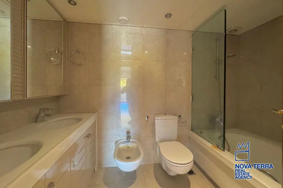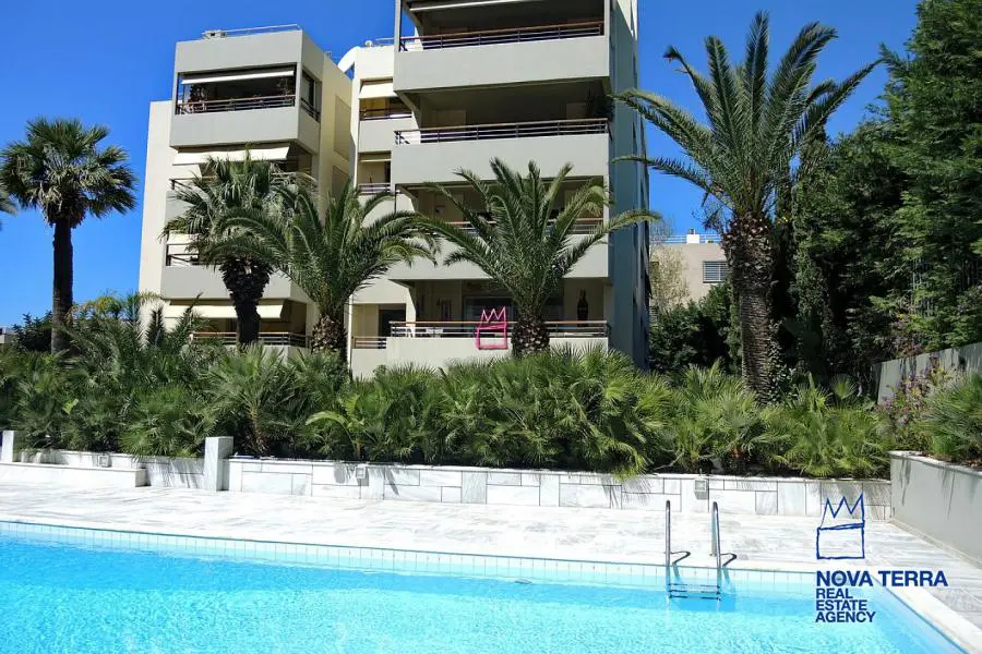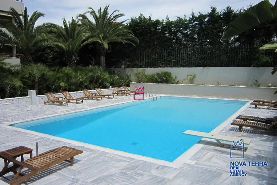 ΕΛΛΗΝΙΚΟ Κάτω, διαμέρισμα προσόψεως, διαμπερές, 3 υ/δ (το 1 master), κατασκευή 2003μπάνια, wc, αυτόνομη θέρμανση, κλιματισμός, τζάκι, πόρτα ασφαλείας, τέντες, θέα θάλασσα,2 υπόγειο πάρκιν, αποθήκη 20 τ.μ., κήπος, πισίνα, τεράστιος χώρος υποδοχής με μεγάλη βεράντα προσόψεως και θέα πράσινου και θάλασσας, ξεχωριστή ευρύχωρη κουζίνα με εντοιχισμένες συσκευές, δρύινα δάπεδα παντού, κεντρικό σύστημα ψύξης - θέρμανσης, ηλιακός, όλα τα δωμάτια με δική τους βεράντα, ανατολικομεσημβρινό, κοινόχρηστη πισίνα και γυμναστήριο, καθημερινή επιστασία και επίβλεψη στους κοινόχρηστους χώρους,