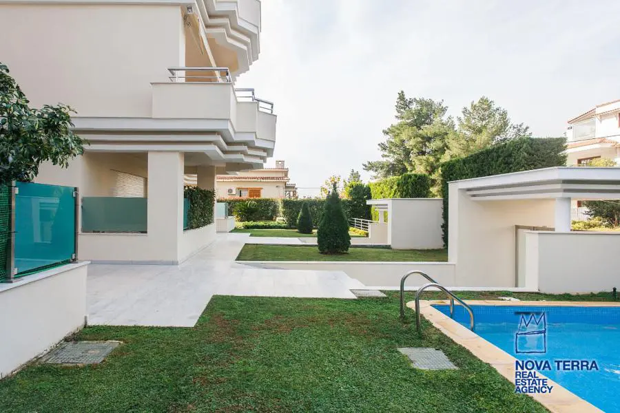 ΓΛΥΦΑΔΑ Αιξωνή, νεόδμητο διαμέρισμα 90 τ.μ., 2ου, προσόψεως, 2 υ/δ, 2 μπάνια, σε οικόπεδο 2.000 τ.μ., απεριόριστη θέα βουνό - θάλασσα, Καινούριο, Πολυτελές, Ακριβή - μοντέρνα επίπλωση, με πισίνα και μεγάλο κήπο. Μεγάλη βεράντα και απεριόριστη Θεα Ενδοδαπέδια θέρμανση, ηλιακός θερμοσίφωνας, Αποθήκη, 2 θέσεις παρκινγ, Σημείωση: Το σημείο στο χάρτη είναι ενδεικτικό δεν καθορίζει την πραγματική διεύθυνση του ακινήτου! - Για την υπόδειξη των ακινήτων είναι απαραίτητη η υπόδειξη της αστυνομικής ταυτότητας και του Α.Φ.Μ. σας σύμφωνα με τον Ν.4072/11-4-2012 ΦΕΚ 86 Α Μπορείτε να βρείτε περισσότερα ακίνητα και πληροφορίες στο www.nova-terra.gr