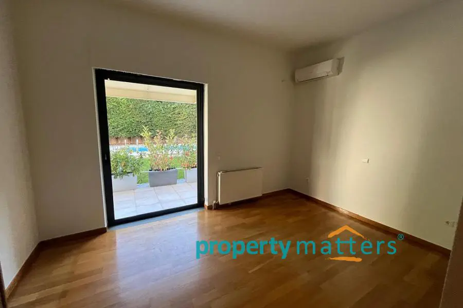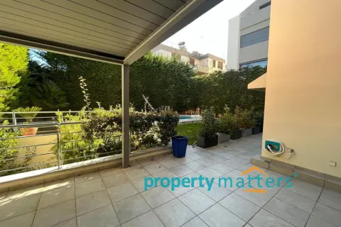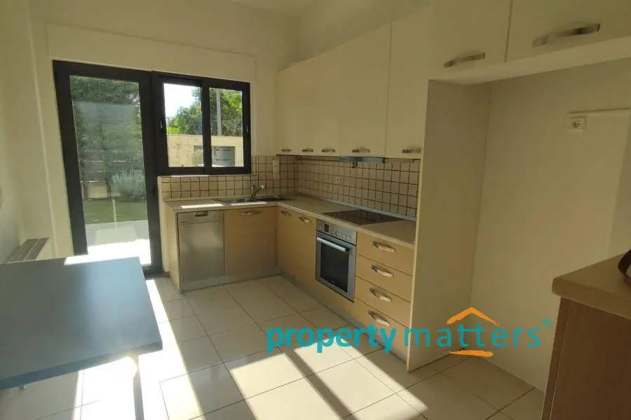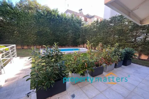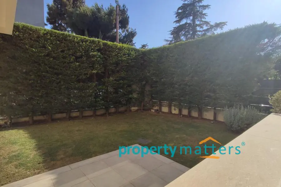 Ισόγειο διαμέρισμα 140 m2 στο Κεφαλάρι με μέρος αποκλειστικής χρήσης κήπου και κοινόχρηστου κήπου με πισίνα. Το διαμέρισμα διαθέτει μεγάλο χώρο καθιστικού-τραπεζαρίας, κουζίνα με πάσο με εντοιχισμένες ηλεκτρικές συσκευές εκτός το ψυγείο, 3 υ/δ, εκ των οποίων το 1 είναι μάστερ, WC επισκεπτών, αποθήκη και υπόγειο πάρκινγκ. Βρίσκεται σε έναν από τους καλύτερους δρόμους του Κεφαλαρίου, σε μικρό κτίριο 4 διαμερισμάτων. Μοντέρνα κατασκευή του 2010 με αυτονομία θέρμανσης φυσικού αερίου, πόρτα ασφαλείας, συναγερμό, παρκέ σε όλους τους χώρους και έξοδο σε κήπο και αποκλειστικής χρήσης βεράντας. Τα κατοικίδια επιτρέπονται. Άμεσα διαθέσιμο.