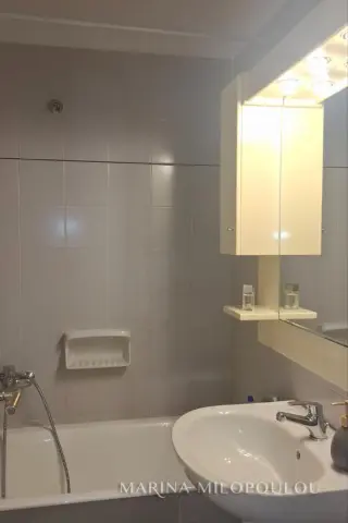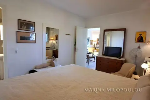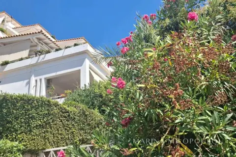 ΑΝΑΒΥΣΣΟΣ - Άγιος Νικόλαος, διαμέρισμα υπερυψωμένου 1ου ορόφου, 58 τμ με πανοραμική θέα θάλασσα. Χώρος υποδοχής, ενιαία κουζίνα, 1 master υ/δ (με δυνατότητα 2ου), 1 μπάνιο, 1 wc, μεγάλη βεράντα. Διαθέτει αυτόνομη θέρμανση πετρελαίου, πόρτα ασφαλείας, διπλά τζάμια, σίτες, τέντες, επιπλέον κάγκελα προστασίας, μαρμάρινα δάπεδα, συναγερμό, κλειστή θέση στάθμευσης, αποθήκη 6τμ. Αποτελεί μέρος συγκροτήματος 16 κατοικιών με 11 ιδιοκτήτες, εντός έκτασης 1420τμ. Κοινόχρηστα μηνιαίως 30€/μήνα. Τιμή ζώνης 1850€. Βρίσκεται επάνω σε λόφο με πανοραμική θέα προς την θάλασσα, σε πολύ ήσυχο εξοχικό περιβάλλον, σε μια πανέμορφη περιοχή της ΑθηναΪκής Ριβιέρας με ανερχόμενη ζήτηση και οικιστική ανάπτυξη. Απόσταση 750 μ από την ωραία αμμώδη και οργανωμένη παραλία του Αγίου Νικολάου, 3,8 χλμ από την Παλαιά Φώκαια, 4,8 χλμ από την Σαρωνίδα, 17 χλμ από το το νέο μεγάλο επιβατικό λιμάνι του Λαυρίου, 31 χλμ από το Διεθνές Αεροδρόμιο.