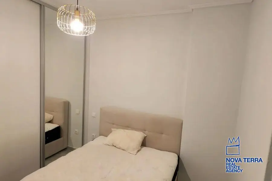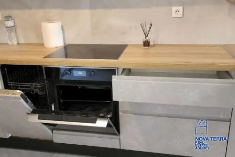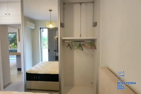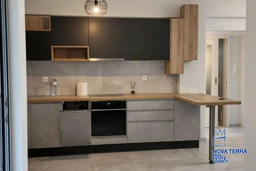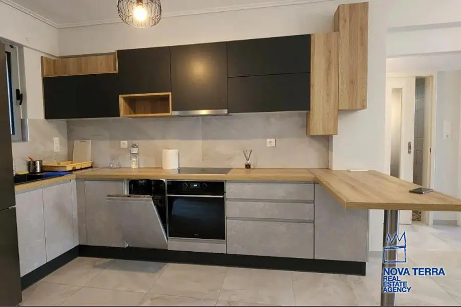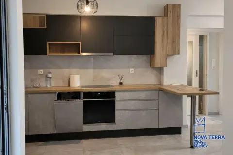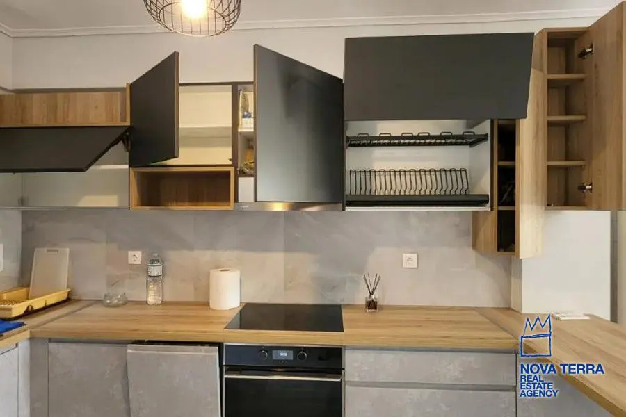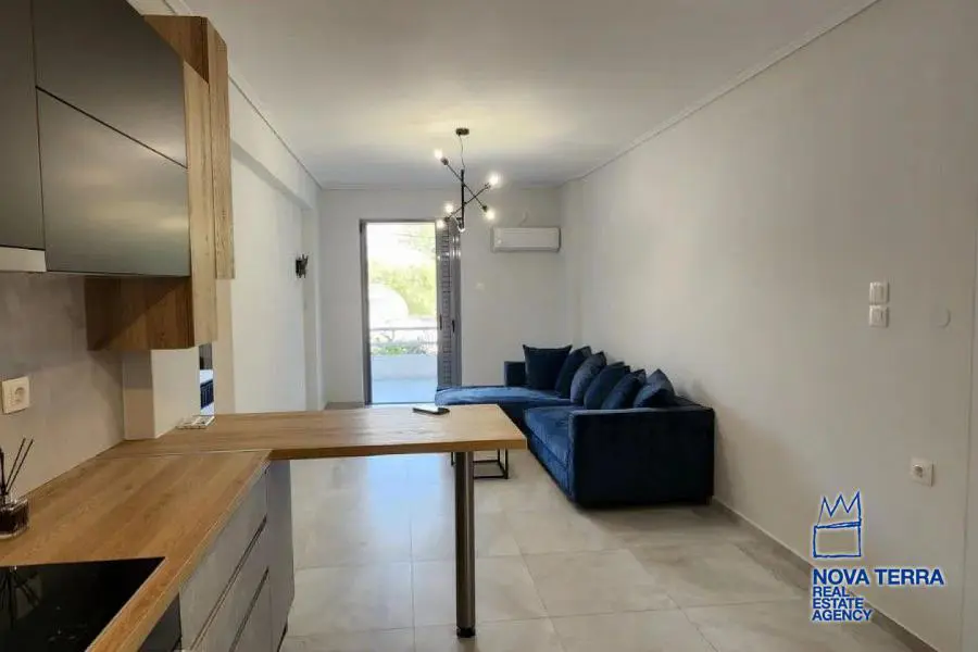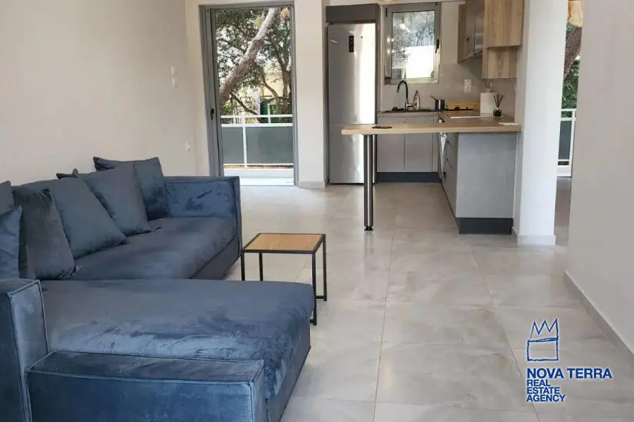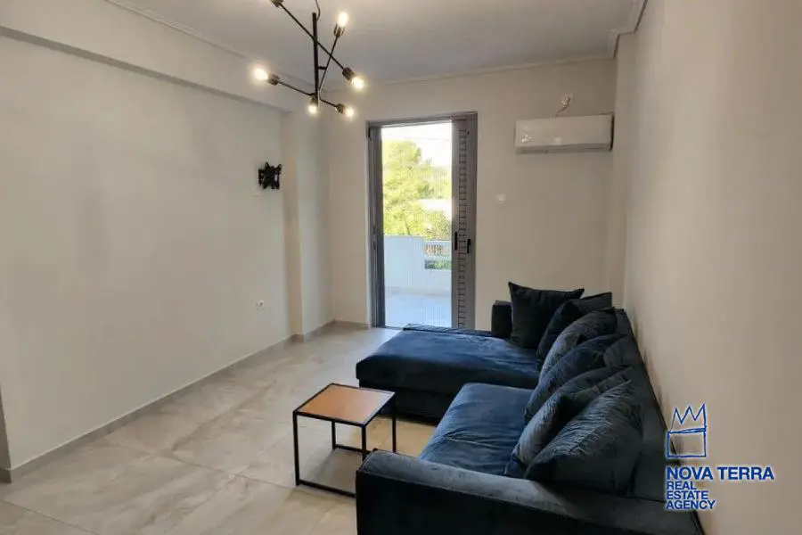 Eιεπιπλωμένο, 1 ου ορόφου με ασανσέρ, συνολικού εμβαδού 60 τ. μ. πλήρως ανακαινισμένο το 2021 με γούστο, πολύ λειτουργικό, ευάερο και θερμομονωμένο. Διαθέτει 2 υπνοδωμάτια με μεγάλες ντουλάπες / καθρέφτη, 1 καινούργιο μπάνιο και 3 βεράντες. Ηλεκτρική κουζίνα συναγωγής με κουκούλα, καινούργιο ψυγείο, και τραπέζι φαγητού. Σύγχρονα κλιματιστικά, θέρμανση (Α+++) ψύξη (Α++) Διαθέτει 2 νέα κρεβάτια και σαλόνι με καναπέ σε σχήμα L. Είναι πλήρως ανακαινισμένο με μαρμάρινα δάπεδα, μια μεγάλη μπροστινή βεράντα με πανοραμική θέα σε ένα καταπράσινο βουνό και άλλες δύο μικρότερες βεράντες με θέα στον κήπο με το πράσινο. Διαθέτει συναγερμό και καινουργια πόρτα με κλειδαριά ασφαλείας, καινούριες συρόμενες μπαλκονόπορτες αλουμινίου με διπλά τζάμια και σίτες. Είναι κοντά σε συγκοινωνίες - σχολεία - και σε κοντινή απόσταση με τα πόδια από την αγορά και τη θάλασσα