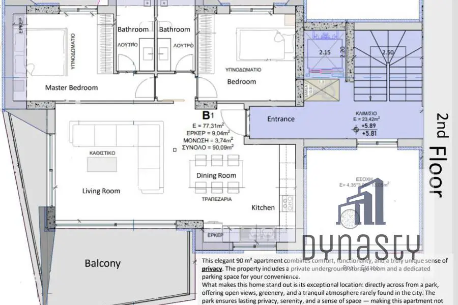 Σύγχρονο Πολυτελές Διαμέρισμα στη Βούλα προς Πώληση – 90τ.μ. | Κατασκευή 2026 2ος Όροφος Υπνοδωμάτια: 2, Μπάνια 2 Θέσεις στάθμευσης: 1 (Υπογείου) Προσφέρει εξαιρετική θέα και προσανατολισμό προς το πάρκο του Ελληνικού. Περιγραφή: Η κατοικία αποτελεί μέρος ενός σύγχρονου οικιστικού συγκροτήματος, σχεδιασμένου με στόχο τη λειτουργικότητα, την άνεση και την υψηλή αισθητική. Η διαρρύθμιση είναι μελετημένη ώστε να προσφέρει ευρυχωρία και πρακτικότητα, ενώ η κατασκευή διαθέτει σύγχρονα συστήματα θέρμανσης/ψύξης και θέση στάθμευσης στο υπόγειο. Η τοποθεσία είναι εξαιρετική, καθώς η Βούλα προσφέρει άμεση πρόσβαση τόσο στο παραλιακό μέτωπο όσο και στις βασικές αρτηρίες προς το κέντρο της Αθήνας. 1. Χαρακτηριστικά Κατασκευής -Ενδοδαπέδιο σύστημα θέρμανσης -Κλιματισμός με fan coil οροφής -Σύστημα συναγερμού -Σύστημα πυροπροστασίας -Εγκατάσταση οπτικών ινών 2. Ενεργειακή Απόδοση -Ενεργειακά αποδοτικά αλουμινένια κουφώματα -Εξωτερική θερμοπρόσοψη από τη γερμανική εταιρεία STO -Σύστημα smart home -Ηλιακά πάνελ -LED φωτισμός σε όλους τους χώρους 3. Πρόσθετα Χαρακτηριστικά -Σταθμός φόρτισης ηλεκτρικών οχημάτων -Παρκέ δάπεδα -Τριφασική παροχή ρεύματος 4. Εγκαταστάσεις -Αντισεισμική κατασκευή -Οπλισμένο σκυρόδεμα -Στεγανοποίηση δώματος και υπογείου -Σύστημα γείωσης -Μεγάλα ανοίγματα που εξασφαλίζουν άφθονο φυσικό φως 5. Στοιχεία Σχεδιασμού -Γκρι αλουμινένια κουφώματα -Αντιβανδαλικοί υαλοπίνακες -Κουζίνα ιταλικού σχεδιασμού -Εντοιχισμένα είδη υγιεινής -Κρεμαστές λεκάνες -Πλακίδια μεγάλων διαστάσεων -Κρυφός / ενσωματωμένος φωτισμός Κωδικός ακινήτου: 319 dynastyrealestate.gr