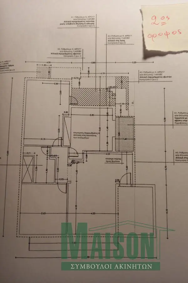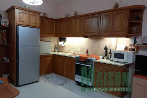 Πωλείται στην Ανω Ηλιούπολη οροφοδιαμέρισμα 2 ορόφου 103 τμ. στος κατασκευτής 1992 Είναι διαμπερές, φωτεινό, ηλιόλουστο κ' από τις δυο πλευρες με τεντες με αυτόνομη θέρμανση πετρελαίου, με δικό του καυστήρα κα' δεξαμενή, χωρίς ανσασέρ, με κοινόχρηστη χρήση ταράτσας κ' αυλής, διπλα από σχολεία, μαγαζιά, σουπερ μάρκετ, πλατείες, παιδικές χαρές, σε ησυχη γειτονιά. Έχει 2 μεγάλες κρεβατοκάμαρες, με ξύλινα πατώματα, με ντουλάπες ή' πόρτες από μασίφ σουηδικό ξύλο (γίνεται και 3 μεγάλη κρεβατοκάμαρα, αν θελετε) 1 τουαλέτα με δυνατότητα κ' W.C. (έχει 2 παράθυρα και πατάρι) Αλουμίνια παράθυρα με διπλά τζάμια κ' σίτες. Μεγάλες κουζίνα με δρύινα μασίφ ντουλάπια και τζάκι, με μεγάλη βεράντα από τη πλευρά της κουζίνας, με θέα το βουνό και αλουμίνια κάγκελα. Φρεσκοβαμένο εσωτερικά, με πλακάκι το δάπεδο μέσα κ' στις βεράντες, με μόνωση ταράτσας και κλιματισμό, Με συναγεργό PARADOX, τριφασικό ρεύμα κ' νυχτερινό, με μποιλερ για ζεστό νερό από το καλοριφέρ. Ηλεκτρική εγκατάσταση για θερμοσυσωρευτές, με αποθήκη, έχει γερανάκι ηλεκτρικό για ανέβασμα ξύλων και άλλων αντικειμένων. Έχει τη δυνατότητα για ολικώς ή μερικως επιπλωμένο Έχει εγκατάσταση οπτικής ίνους. Κωδικός ακινήτου: 19062. Maison Estate - www.maison-estate.gr.
