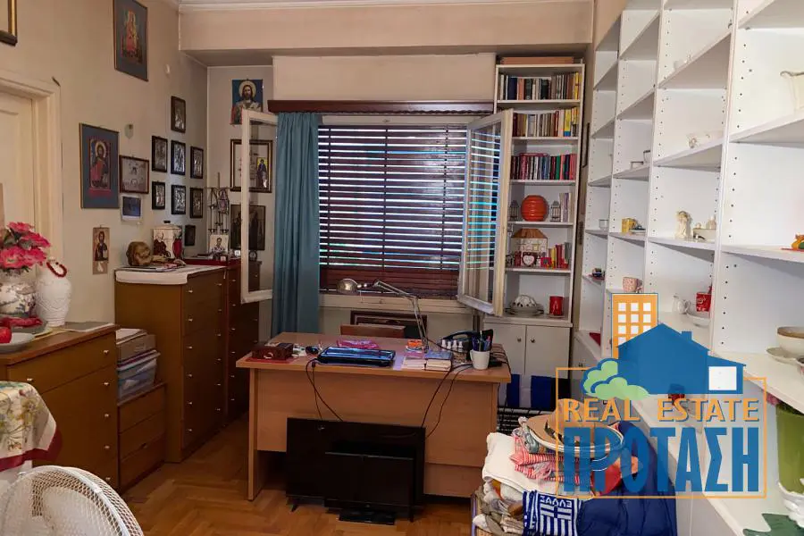 Πεδίον Άρεως. διαμέρισμα 77 τ.μ. 1ου ορόφου 2 υ/δ, εσωτερικό γωνιακό, καλή κατάσταση του΄58, με μερική ανακαίνιση του ΄18, σε κουζίνα, μπάνιο, πόρτα ασφαλείας, διπλά τζάμια αλουμίνια τέντες, 2 κλιματιστικά, με κεντρική θέρμανση πετρελαίου. βρίσκεται σε προσεγμένη πολυκατοικία με καλή διαχείριση, δίπλα στην πλατεία Αγ Γεωργίου, και κοντά στον υπό κατασκευή σταθμό μετρό δικαστηρίων. κατάλληλο για εκμετάλλευση. Pedion Areos. 77 sq m. apartment, 1st floor, 2 bedrooms, interior corner, good condition, 1958, with partial renovation of 2018, in kitchen, bathroom, security door, double glazing, aluminum awnings, 2 air conditioners, with oil central heating. located in a well-maintained apartment building, next to Ag. Georgiou Square, and close to the under-construction metro station of the courts. suitable for exploitation.