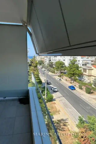 ΓΛΥΦΑΔΑ - Γκολφ και κοντά στο κέντρο, διαμέρισμα διαμπερές, 3ου ορόφου (τελευταίου), 107 τμ 600 μέτρα από την θάλασσα, με θέα θάλασσα από την μπροστινή βεράντα. Χώρος υποδοχής - τραπεζαρίας, ενιαία κουζίνα με εντοιχισμένες ηλεκτρικές συσκευές (εκτός ψυγείου), 2 υπνοδωμάτια, 1 μπάνιο, 1 wc, βεράντα προσόψεως και γωνιακή στην πίσω πλευρά (για τα 2 υ/δ) με θέα στον κήπο. Διαθέτει διπλά τζάμια, ηλεκτρικά ρολά, σίτες, τέντες, αυτόνομη θέρμανση φυσικού αερίου, κλιματιστικά σε όλους τους χώρους, ηλιακό θερμοσίφωνα, ντουλάπες και στον διάδρομο (για χρήση laundry), συναγερμό, 1 θέση στο υπόγειο parking και αποθήκη 12 τμ. Αποτελεί μέρος 3όροφου, σύγχρονου καλαίσθητου κτιρίου, με όμορφο κήπο και με συνολικά 8 ιδιοκτησίες. Σε ιδανική τοποθεσία, 150 μέτρα από το γήπεδο Γκολφ, επάνω σε ημι-κεντρικό δρόμο που οδηγεί στο κέντρο της Γλυφάδας. Τιμή ζώνης 3800€ Απόσταση 600 μέτρα από αμμώδη παραλία και την 2η μαρίνα Γλυφάδας, 700 μέτρα από τον εμπορικό ιστό της Γλυφάδας, 1,8 χλμ από την 5* παραλία του One and Only Resort, 4,5 χλμ από το Μητροπολιτικό Πάρκο Ελληνικού και 26 χλμ από το αεροδρόμιο. Το διαμέρισμα είναι μισθωμένο έως 30/11/25. Οι φωτογραφίες είναι από το πανομοιότυπο διαμέρισμα του 2ου.