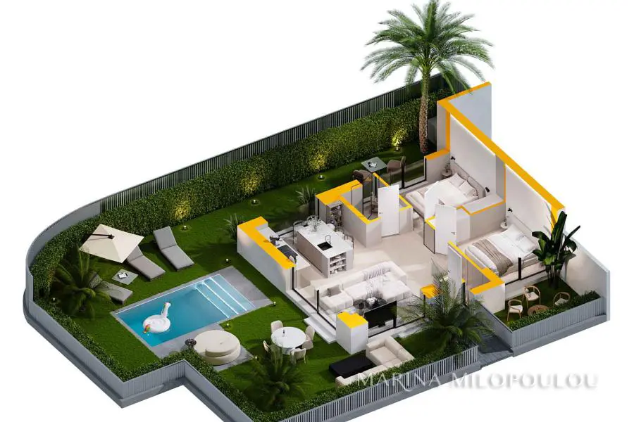 ΓΛΥΦΑΔΑ 'Ανω (λίγο κάτω από την Λ. Γούναρη) σε κτίριο υπό κατασκευή, Μεζονέτα Ισογείου - Υπογείου, 111 τμ, στο πίσω μέρος του κτιρίου (Νότιο) με ιδιωτικό κήπο και πισίνα. - Ισόγειο, 72 τμ, ενιαίος χώρος υποδοχής - τραπεζαρία - κουζίνα, 2 υ/δ 1 μπάνιο. Άμεση πρόσβαση στον κήπο με την πισίνα. - Υπόγειο, 39, τμ, με 1 master υ/δ, κουζινάκι, laundry και 1 επιπλέον wc. Διαθέτει φεγγίτη για φυσικό φωτισμό. Αποτελεί μέρος σύγχρονου 5όροφου γωνιακού κτιρίου με συνολικά 12 ιδιοκτησίες. Διαθέτει πολύ ήσυχο κήπο 100 τμ με πισίνα 11,5 τμ, κλιματισμό, ενδοδαπέδια, ενεργειακά τζάμια θερμοδιακοπής, υβριδικά ηλιακά panels για ζεστό νερό, Ισόγεια θέση στάθμευσης και υπόγεια αποθήκη. Τιμή ζώνης 2350€. Βρίσκεται πολύ κοντά σε τοπική αγορά, 2,2 χλμ από το μετρό Ελληνικού και τον εμπορικό ιστό της Γλυφάδας, 3 χλμ από την παραλία της Γλυφάδας, 3,5 χλμ από το Μητροπολιτικό Πάρκο Ελληνικού και 26 χλμ από το αεροδρόμιο. Εκτιμώμενη παράδοση Δεκέμβριο του έτους 2026.