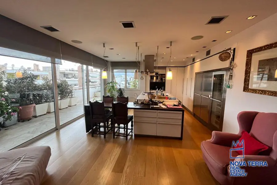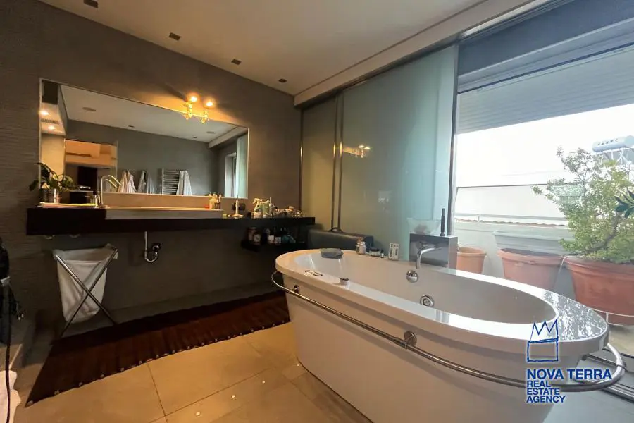 ΓΛΥΦΑΔΑ - ΚΕΝΤΡΟ,. πολυτελέστατο ρετιρέ όροφο-διαμέρισμα 6ου ορόφου 250τμ σε εξαιρετικό σημείο στο κέντρο της Γλυφάδας μόλις 100 μέτρα από την παραλία με απεριόριστη θέα σε θάλασσα και βουνό. Διαθέτει μεγάλο σαλόνι με δρύινα δάπεδα και τζάκι, open plan κουζίνα με εντοιχισμένες ηλεκτρικές συσκευές, 2 υπ/δ, 1 πολύ μεγάλο μάστερ με χώρο γραφείου και καθιστικού, τζάκι διπλής όψεως, δυνατότητα 3ου υπνοδωματίου, 2 μπάνια, laundry room, πολλές ντουλάπες, βεράντες περιμετρικά με απεριόριστη θέα 110τμ. Πισίνα κοινόχρηστη, αυτονομία φυσικού αερίου, ηλιακός, φαν κόιλ ψύξης -θέρμανσης, κουφώματα αλουμινίου, διπλά τζάμια ηλεκτρικά ρολά, πόρτα ασφαλείας, 1 θέση στάθμευσης πιλοτής και 1 αποθήκη κωδικός ακινήτου: 49234, www.nova-terra.gr *** Κατά την υπόδειξη του ακινήτου χρειάζεται να υποδεικνύεται η ταυτότητα σας σύμφωνα με τον νόμο Ν.4072/2012 . **** Το γραφείο μας λειτουργεί στα πλαίσια του νόμου περί μεσιτείας της ελληνικής νομοθεσίας.