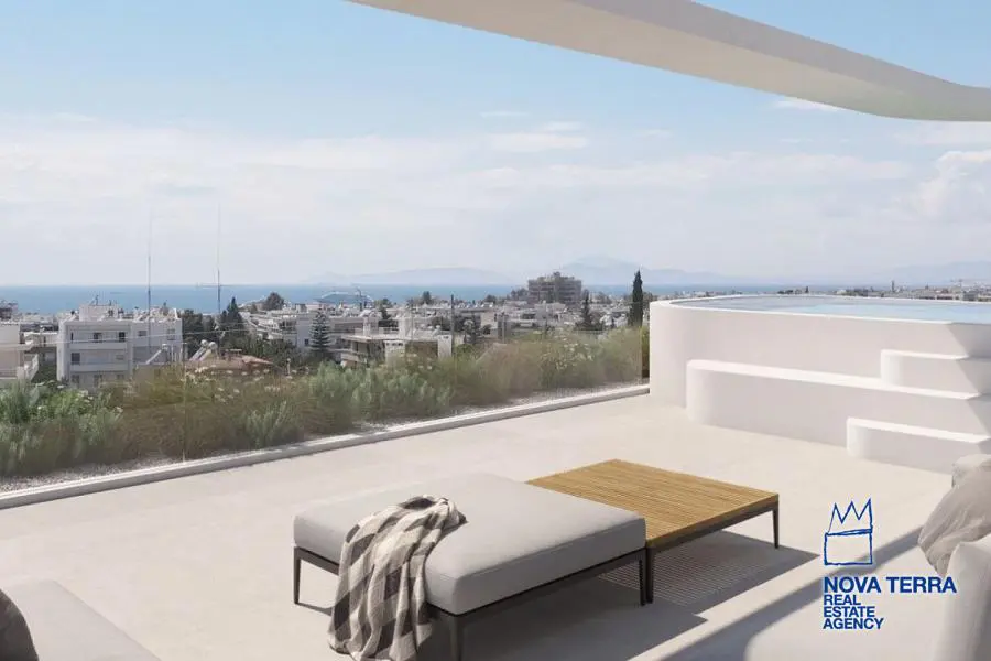 ΓΛΥΦΑΔΑ - ΚΕΝΤΡΟ, Γλυφάδα (Κάτω), ρετιρέ 4ου και 5ου ορόφου συνολικής επιφάνειας 190,23 τ.μ., με αποκλειστική χρήση δώματος, πισίνα και θέα στη θάλασσα. Ο 4ος όροφος αποτελείται από μοντέρνο ανοιχτό χώρο καθιστικού με τραπεζαρία και κουζίνα, 2 υπνοδωμάτια master με en-suite μπάνια, ένα WC και μεγάλες βεράντες. Εσωτερική σκάλα μας οδηγεί στο τελευταίο επίπεδο, όπου βρίσκεται ένα ακόμα υπνοδωμάτιο master με en-suite μπάνιο, το δεύτερο καθιστικό με άμεση πρόσβαση στο roof garden και την πισίνα. Στο υπόγειο βρίσκεται ένα δωμάτιο υπηρεσίας με ένα μπάνιο και φυσικό φωτισμό και αερισμό, 2 υπόγειες θέσεις στάθμευσης με φορτιστή ηλεκτρικού οχήματος και μια υπόγεια αποθήκη. , Ενεργειακή κλάση: A. κωδικός ακινήτου: 50994, www.nova-terra.gr