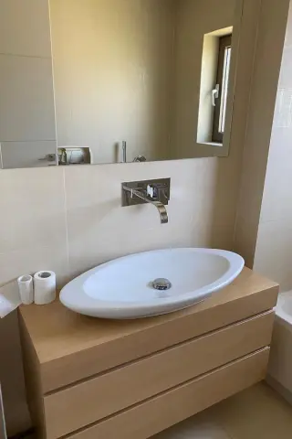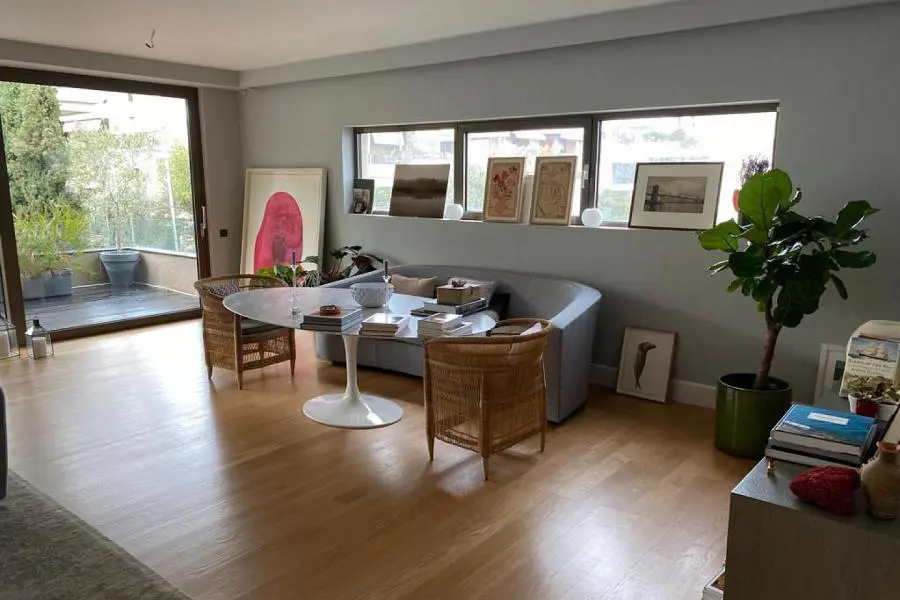 Σε εξαιρετικής αισθητικής κτίριο, μοντέρνο, υψηλών προδιαγραφών οροφοδιαμέρισμα 1ου ορόφου, 190 τ.μ. Το διαμέρισμα είναι κατασκευής 2010 και συνοδεύεται από laundry, 2 θέσεις garage και αποθήκη. Αποτελείται από πολύ ευρύχωρο σαλόνι με τζάκι και όμορφη, φωτεινή κουζίνα εξοπλισμένη με όλες τις ηλεκτρικές συσκευές. Τα υπνοδωμάτια είναι συνολικά 3, εκ των οποίων το ένα είναι master. Τα δύο παιδικά μοιράζονται ένα μπάνιο. Υπάρχει ακόμα wc επισκεπτών. Το διαμέρισμα είναι διαμπερές και πολύ φωτεινό. Όλα τα δωμάτια βγάζουν σε ευρύχωρες βεράντες. Λοιπά χαρακτηριστικά: • Φαρδιά δρύινα δάπεδα • Αυτόνομη ενδοδαπέδια θέρμανση με φυσικό αέριο • Κεντρικός κλιματισμός VRV • Τζάκι • Διπλά τζάμια • 2 θέσεις garage • Αποθήκη • Laundry • Studio προσωπικού 30 τ.μ.