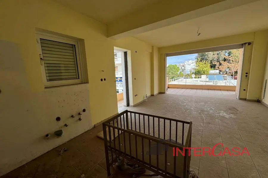 Διαμέρισμα υπερυψωμένου ισογείου (Δ-1) επιφανείας 51,98 τ.μ. αποτελείται από ενιαίο καθιστικό - κουζίνα, λουτρό και 1 Υ/Δ, με αποκλειστική χρήση ακάλυπτου χώρου επιφανείας 17,39 τ.μ. , σε απόσταση 1 χλμ από σταθμό ΗΣΑΠ. Χρήζει επισκευών