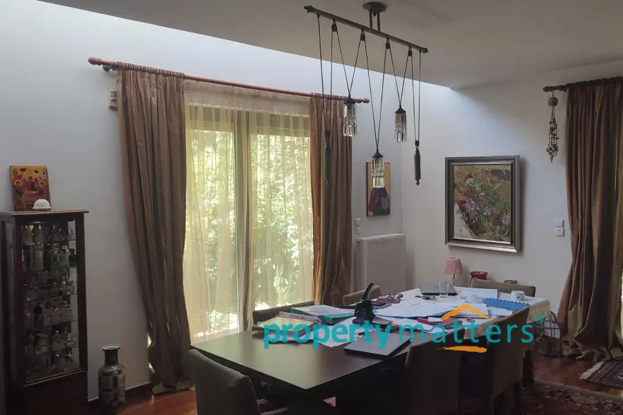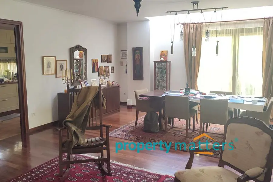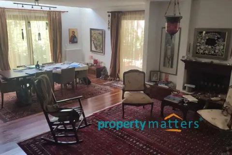 This exceptional apartment, located in a prime area, offers a spacious living experience. Spanning a total area of 310 square meters, it includes 210 square meters of main living space and approximately 100 square meters of auxiliary spaces. The apartment is bright, corner-located, and cross-ventilated, ensuring ample natural light and a pleasant atmosphere. Interior Features - Bedrooms: The property boasts three spacious bedrooms, each with its own ensuite bathroom, providing privacy and convenience for residents. - Additional Bathrooms: There is an extra bathroom located in the semi-basement, along with a guest WC for added convenience. - Living Rooms: The two expansive living rooms features a cozy fireplace, perfect for relaxation and entertaining guests. - Kitchen: The apartment includes a closed kitchen with a separate entrance, allowing for easy access and privacy. The kitchen is designed to meet all modern culinary needs. - Laundry Room: A dedicated laundry room is available, providing practical space for washing and storage. Auxiliary Spaces: - Playroom: A large area equipped with bookcases, situated in the semi-basement with curved windows that allow natural light and fresh air to flow in. It features a second fireplace and has an exit door leading directly to the parking area. - Storage: Multiple storage rooms are available, ensuring ample space for all your belongings. - Parking: The property includes three parking spaces, offering convenience and security for your vehicles. Accessibility: - Elevator: An elevator services the apartment, running from the basement to the ground floor, ensuring easy access. The apartment features a spacious private garden and has its own independent heating system powered by petrol. Location: The apartment is situated just a 5-minute walk from the Kifisia market, offering easy access to shops, restaurants, and other amenities. Price: This apartment is available for €1,200,000, reflecting its confortable features and prime location. The apartment is extremely close to ISA in Kefalari and is an excellent property choice, even for foreigners moving to Greece.