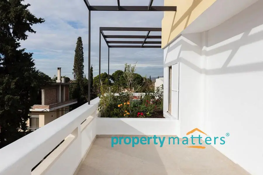 Ρετιρέ - Μεζονέτα 2 επιπέδων κοντά στο κέντρο της Κηφισιάς, στην οδό Παν. Τσαλδάρη. Το διαμέρισμα διαθέτει δρύινα δάπεδα, μεγάλους χώρους με άπλετο φυσικό φως. Είναι πρόσφατα ανακαινισμένο (καινούργια ηλεκτρολογική καθώς και υδραυλική εγκατάσταση), έτος 2023 και βρίσκεται στον 3ο όροφο. Η συνολική του επιφάνεια είναι 233 τ.μ. και περιλαμβάνει 3-4 υπνοδωμάτια, 3 μπάνια, 1 WC, ένα σαλόνι - τραπεζαρία και μια κουζίνα. Επιπλέον υπάρχει ένα ακόμα δωμάτιο το οποίο μπορεί να γίνει είτε 4ο υπνοδωμάτιο η playroom/γραφείο, ανάλογα με τις προτιμήσεις του ιδιοκτήτη. Επιπλέον περιλαμβάνει δυο ευρύχωρους εξωτερικούς χώρους με εξωτερικό BBQ. Το διαμέρισμα χαρακτηρίζεται ως Smart Home (μπορεί κανείς με εφαρμογή στο κινητό του να ρυθμίζει την θερμοκρασία, να ανοιγοκλείνει τα παντζούρια, κλπ.). Η κουζίνα είναι εξοπλισμένη με φούρνο 90cm, κεραμικές εστίες 90cm καθώς και απορροφητήρα μάρκας SMEG. Επίσης διαθέτει πόρτες ασφαλείας, αυτόνομη θέρμανση(φυσικό αέριο), ηλιακό θερμοσίφωνα, ασανσέρ, μεγάλο τζάκι και προεγκατάσταση για κλιματισμό και συναγερμό. Τα κουφώματα αλουμινίου του διαμερίσματος είναι ενεργειακά και θερμομονωτικά, τελευταίας τεχνολογίας. Τέλος, στο διαμέρισμα αναλογεί μια κλειστή θέση parking καθώς και ένας αποθηκευτικός χώρος. Ο ιδιοκτήτης μπορεί να κάνει χρήση της ευρύχωρης, κοινόχρηστης πισίνας. Οι γειτνίαση είναι πολύ φιλική και ιδιαίτερα ήσυχη