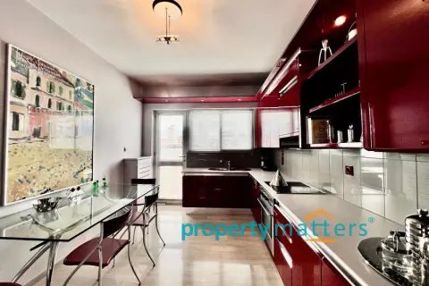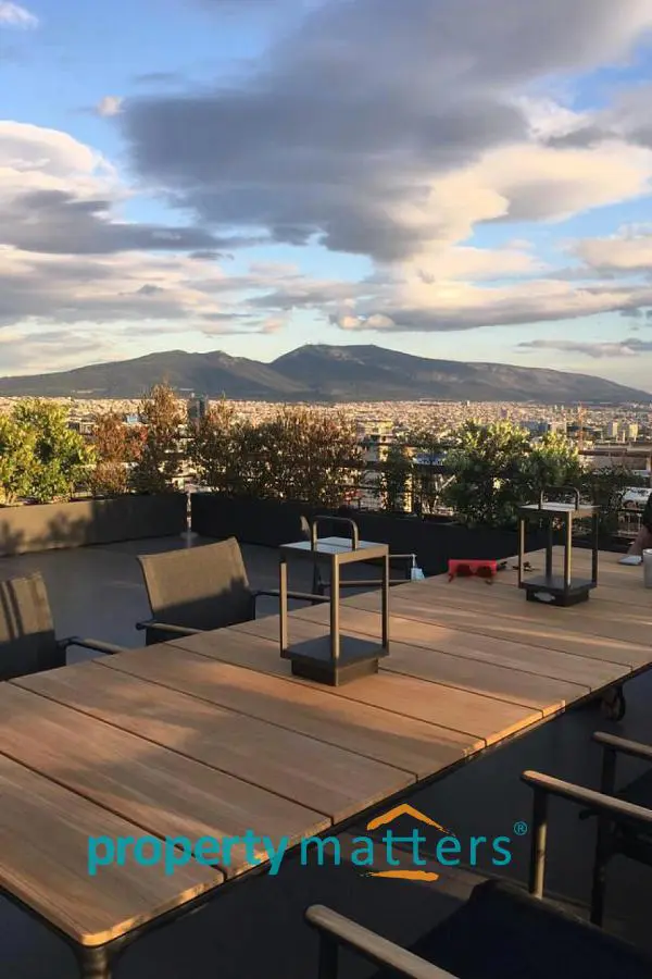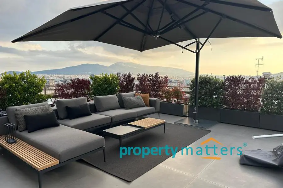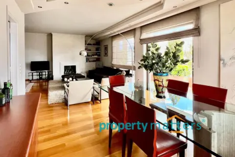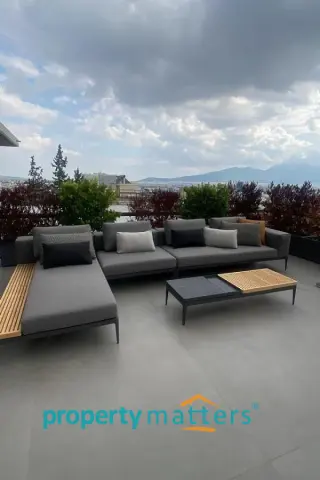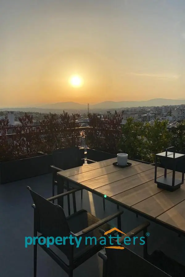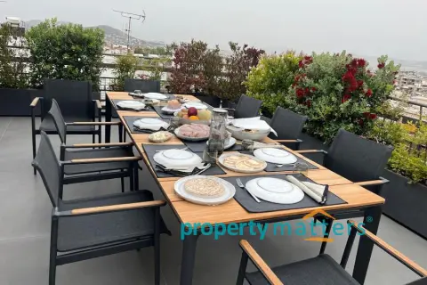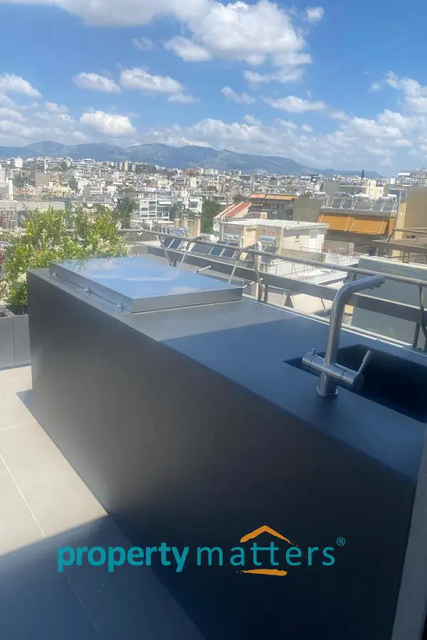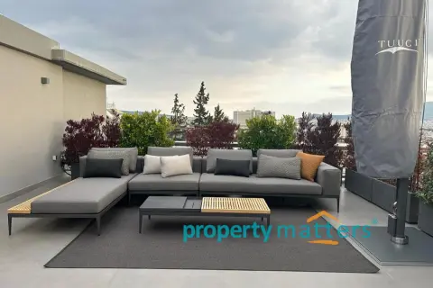 Stylish Apartment with Private Rooftop Studio & Panoramic Views | Marousi A bright 5th-floor apartment of 150 m² with surrounding balconies, south-facing orientation, and open city and mountain views. The residence features 3 bedrooms, 2 bathrooms, a spacious living and dining area, and a separate kitchen. The property includes a 20 m² fully renovated rooftop studio with an exclusive 100 m² terrace, BBQ area, and 360° panoramic views of Athens. Two underground parking spaces and a private storage room are included. Golden Visa eligible, currently rented, offering a 4.5% annual return, with the option to connect the apartment and rooftop studio internally for added flexibility.