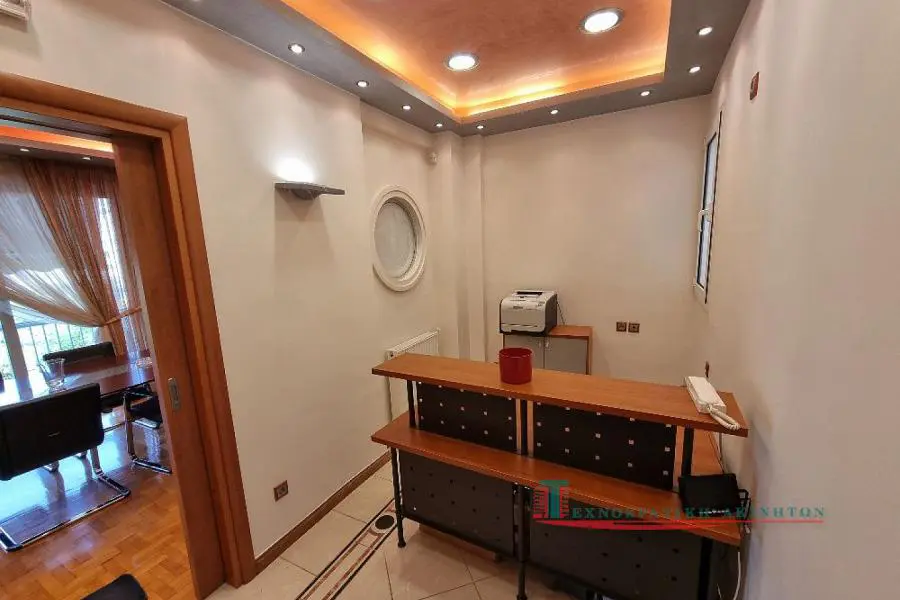ΠΩΛΕΙΤΑΙ ΤΡΙΑΡΙ ΔΙΑΜΠΕΡΕΣ ΕΠΙΠΛΩΜΕΝΟ ΟΡΟΦΟΔΙΑΜΕΡΙΣΜΑ ΜΕ ΛΟΥΤΡΟ, W.C. KAI ΚΟΥΖΙΝΑΚΙ, ΧΩΡΟ RECEPTION ΚΑΙ ΑΠΟΘΗΚΑΚΙ, ΠΛΗΡΩΣ ΑΝΑΚΑΙΝΙΣΜΕΝΟ, κατάλληλα διαμορφωμένο για επαγγελματική στέγη – Γραφείο, ιδανικό για δικηγορικό γραφείο, γραφείο μηχανικού, γραφείο συσκέψεων, με θέα την Πλατεία Αιγύπτου (συντριβάνι). Περιλαμβάνει: • Άνοιγμα τζαμωτών προς την Πλατεία Αιγύπτου 6 μέτρων. • Καινούρια εξωτερικά κουφώματα αλουμινίου ALUMIL με διπλά τζάμια. • Εσωτερικά κουφώματα PRODECTA. • Θωρακισμένη πόρτα εισόδου. • Καινούρια ηλεκτρική εγκατάσταση με καινούρια καλωδίωση, καινούριο ηλεκτρικό πίνακα, καινούριες πρίζες, διακόπτες. • Εγκατάσταση θυροτηλεόρασης. • Καινούρια υδραυλική εγκατάσταση. • Καινούρια είδη υγιεινής και καινούριες μπαταρίες. • Καινούρια έπιπλα μπάνιου. • Καινούρια δάπεδα. • Ειδική κατασκευή ψευδοροφής με ειδικό φωτισμό και μικροφωνική εγκατάσταση στο χώρο του μεγάλου γραφείου και της τραπεζαρίας συσκέψεων. • Ειδική κατασκευή ψευδοροφής με ειδικό φωτισμό στο χώρο του μπάνιου. • Ειδική διαμόρφωση χώρου αποθήκης. • Ειδική διαμόρφωση του χώρου της μικρής κουζίνας με εντοιχισμένο ψυγείο – έπιπλο νεροχύτη – ντουλάπι. • Καινούρια σώματα καλοριφέρ. • Εγκατάσταση συναγερμού΄ • Διαμόρφωση χώρου Reception. • Καινούριες κουρτίνες με συρόμενο μηχανισμό. • Εντοιχισμένη βιβλιοθήκη. • Ειδική εγκατάσταση επικοινωνίας Η/Υ όλων των χώρων. • Καινούρια κάγκελα στη βεράντα του ακαλύπτου. • Καινούρια δάπεδα της βεράντας του ακαλύπτου. • Εγκατάσταση ενεργειακών κλιματιστικών σε όλους τους χώρους. • Δύο (2) ειδικά φωτιστικά οροφής γραφείων. ΕΠΙΠΛΩΣΗ DROMEAS – SATO • Γραφείο διευθυντικό γωνιακό DROMEAS, διαστάσεων 2.300 x 1.900 x 740 MM. • Συρταριέρα DROMEAS. • Διευθυντική Τράπεζα συνεδριάσεων DROMEAS, διαστάσεων 451 x 606 x 558 MM. • Σύνθεση βιβλιοθηκών DROMEAS, διαστάσεων 2.400 x 422 x 2.400. • Σύνθεση Ερμαρίων DROMEAS, διαστάσεων 1.600 x 422 x 800 MM. • Έξι (6) καθίσματα συνεργασίας δερμάτινα DROMEAS. • Ένα (1) κάθισμα εργασίας ΖΕΑ – M DROMEAS. • Εντοιχισμένη βιβλιοθήκη διαστάσεων 3 μ. x 3 h. • Γωνιακό γραφείο SATO. • Συρταριέρα γραφείου SATO. • Έπιπλο RECEPTION.