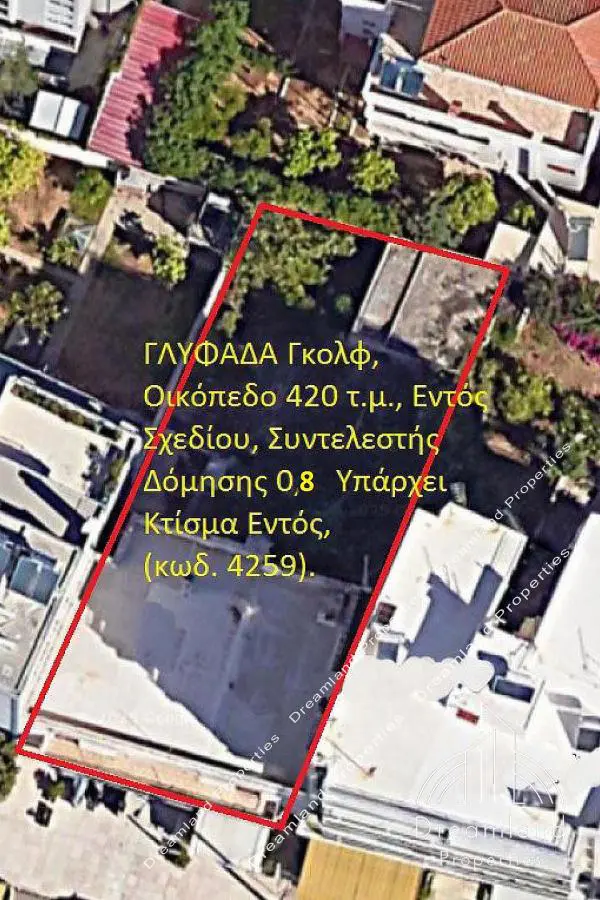 ΓΛΥΦΑΔΑ Γκολφ, Οικόπεδο 430 τ.μ., Εντός Σχεδίου, Συντελεστής Δόμησης 0,8, Πρόσοψη 15 μ., Υπάρχει Κτίσμα Εντός, Τιμή 1.200.000 Ευρώ (κωδ. 4259). "Dreamland Properties" Τηλ.: +30 21210.46321 Web: www.dreamlandproperties.gr Email: dreamlandestate@outlook.com Ώρες Λειτουργίας: Δευ-Παρ: 09:30-17:30