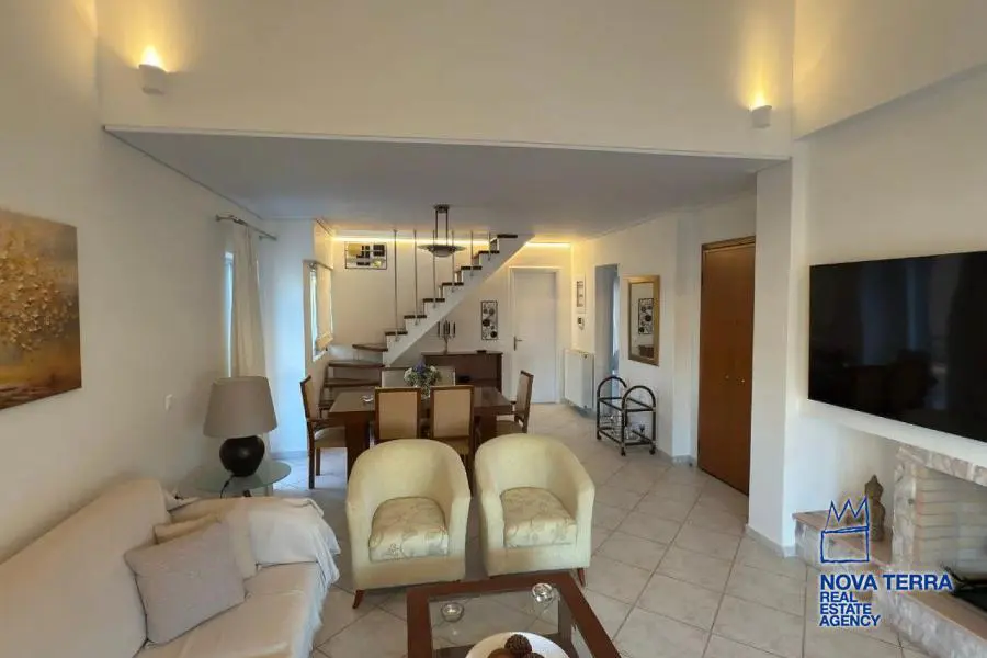 Γλυφάδα Κέντρο – Μεζονέτα 4ου-5ου, ρετιρέ, φωτεινό, διαμπερές, κατασκευή 2000, πλήρης ανακαίνιση 2025. 4ος όροφος: σαλόνι - τραπεζαρία με τζάκι, κουζίνα με καινούριες εντοιχισμένες συσκευές & μπαλκόνι, ένα υπνοδωμάτιο, λουτρό & WC. 5ος όροφος: 2 υπνοδωμάτια & WC. Αυτόνομη θέρμανση πετρελαίου, A/C, διπλά τζάμια, πόρτα ασφαλείας, συναγερμός, αποθήκη, ασανσέρ, μεγάλες βεράντες με θέα & ηλεκτρικές τέντες. Ενοικιάζεται πλήρως επιπλωμένο. Πλησίον του κέντρου της Γλυφάδας.
