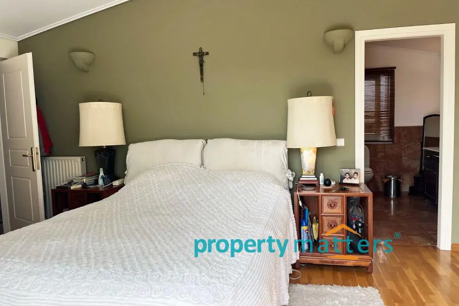 Μεζονέτα 220τμ συν 108,65τμ βοηθητικοί χώροι, 1 master, 3 Υ/δ, 2 μπάνια, Wc, κουζίνα ανοιχτή με ηλεκτρικές συσκευές, μεγάλο σαλόνι, τζάκι, γραφείο, αυτόνομη θέρμανση πετρελαίου, ξύλινα δαπεδα, διπλά τζάμια, σίτες, βεράντες με υπέροχη θέα, αυλη περίπου 50τμ, πόρτα ασφαλείας, 2 αποθήκες, Parking 3 θέσεις εσωτερικές, κοινόχρηστη πισίνα.(280.000€)