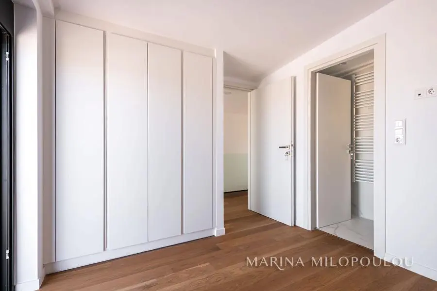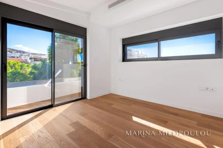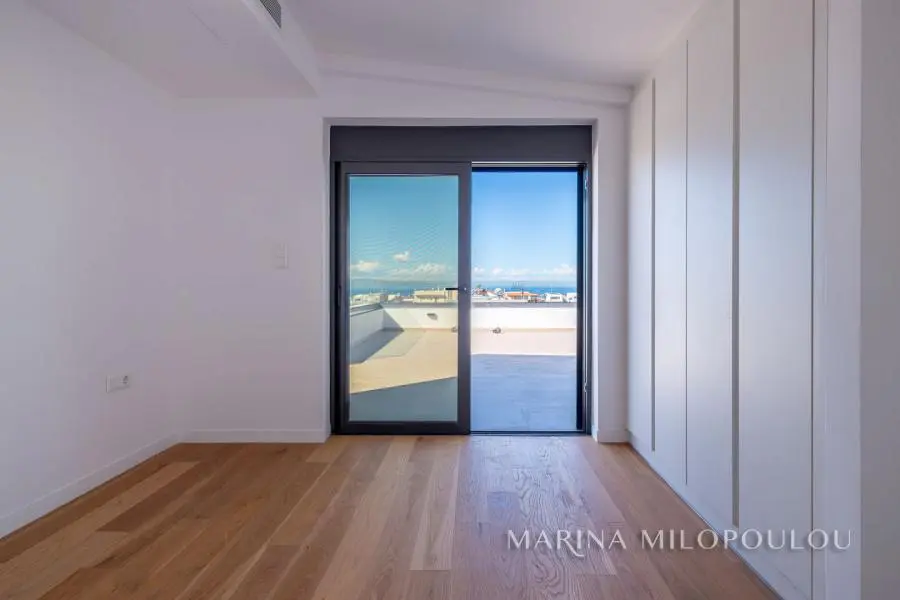 ΒΟΥΛΑ-Δικηγορικά, νεόδμητη μεζονέτα, 2 επιπέδων, 3ου - 4ου, συνολικής επιφάνειας 133 τμ, με θέα θάλασσα. - 3ος όροφος επιφανείας 90 τμ, ενιαίος χώρος υποδοχής - τραπεζαρίας, Open plan κουζίνα, 1 master υπνοδωμάτιο, 1 wc, βεράντα προσόψεως με θέα θάλασσα. - 4ος όροφος επιφανείας 43 τ.μ, (πρόσβαση με εσωτερική σκάλα μόνο), 2 υ/δ - το 1 master - με μεγάλη βεράντα με απεριόριστη θέα θάλασσα, 1 επιπλέον μπάνιο. Διαθέτει πόρτα ασφαλείας, ηλιακό θερμοσίφωνα, κεντρικό κλιματισμό για ψύξη / θέρμανση, θυροτηλεόραση, δρύινα δάπεδα, κουφώματα αλουμινίου θερμοδιακοπής, σίτες, ηλεκτρ. ρολά, προεγκατάσταση συναγερμού, δορυφορική κεραία, νυχτερινό ρεύμα, υπόγεια θέση στάθμευσης με φόρτιση ηλεκτρικού αυτοκινήτου. Τιμή ζώνης 2600€. Αποτελεί μέρος 4όροφου κτιρίου, σε ήσυχη γειτονιά και κοντά σε σχολείο και ΜΜΜ. Σε απόσταση 600μ από τοπική αγορά και από το tenis club Γλυφάδας, 1,6 χλμ από το κέντρο της Βούλας, 2 χλμ από την Α' πλαζ Βούλας, 2,4 χλμ από τον εμπορικό ιστό της Γλυφάδας, 2,8 χλμ από την 5* παραλία του "One and Only Resort" και 20 χλμ από το αεροδρόμιο.
