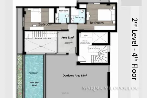ΒΟΥΛΑ, Κάτω, σε κτίριο υπό ανέγερση, Ρετιρέ μεζονέτα, 3ου - 4ου ορόφου, συνολικά 170.5 τμ. με ιδιωτική πισίνα και θέα θάλασσα. -3ος όροφος, 109 τμ χώρος υποδοχής, τραπεζαρία, κουζίνα, 1 master υ/δ με μεγάλο walk-in closet, 1 wc, βεράντα προσόψεως. - 4ος όροφος, 61 τμ, 2 en-suite υπνοδωμάτια με έξοδο σε μπαλκόνι, μεγάλος εξώστης 68 τμ με την πισίνα 20 τμ και εξαιρετική θέα θάλασσας. Αποτελεί μέρος κτιρίου ενεργειακής κλάσης Α+ με συνολικά 4 ιδιοκτησίες. Διαθέτει δρύινα δάπεδα, κλιματισμό (fan-coil), ενδοδαπέδια, συναγερμό, σύστημα πυρανίχνευσης, ηλιακά panel, led φωτισμούς, αλουμίνια θερμοδιακοπής και διπλά τζάμια, τεχνολογία Smart Home, υπόγεια θέση αποθήκη και 2 υπόγειες θέσεις στάθμευσης. Τιμή ζώνης 2800€. Βρίσκεται σε απόσταση 350 μέτρων από τοπική αγορά, 1,2 χλμ από την Α' πλαζ Βούλας, 1,4 χλμ από το κέντρο της Βούλας και 23 χλμ από το αεροδρόμιο. Εκτιμώμενη παράδοση Οκτώβριος του έτους 2027.