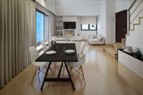 A modern maisonette of 144m2 total area is located in a quiet area in Alimos. The property develops in 3 levels: the 3rd, 4th and 5th floor. The 3rd floor of 71m2 total area consists of a living room, kitchen, a dining room, 1 bedroom, 1 bathroom and a WC. The 4th floor consists of 1 bedroom with a sitting area and 1 bathroom while the 5th floor is comprised of a kitchen, sitting area, 1 bedroom and a bathroom. The maisonette also comes with a closed parking space, storage room in the basement and underfloor heating Features • 3 bedrooms • 3 bathrooms • 1 WC • Parking (with charger for electric cars in every spot) • Storage room • Underfloor heating • Security door • Fireplace • Security alarm • Air conditioning Estimated delivery: March 2023