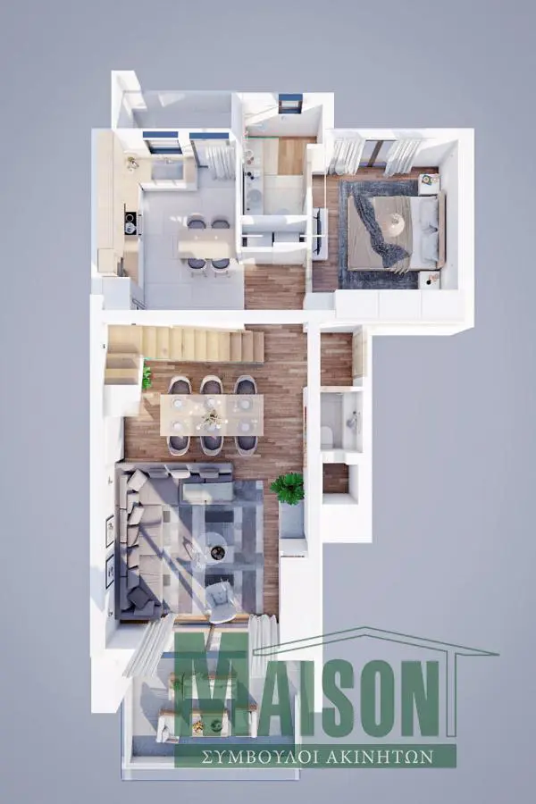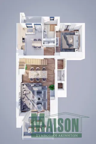 Το διαμέρισμα βρίσκεται στον 5ο και 6ο όροφο του κτιρίου, εχει επιφάνεια 140,74 m² και αποτελείται απο Επίπεδο 1 • Κουζίνα (με μπαλκόνι 3,90m²) • Τραπεζαρία/καθιστικό (με μπαλκόνι 15,20m²) • Υπνοδωμάτιο 1 (master,με μπαλκόνι 4,40m²) • WC Επίπεδο 2 • Υπνοδωμάτιο 2 (με μπαλκόνι 3,90m²) • Υπνοδωμάτιο 3 (με μπαλκόνι 4,40m²) • Γραφείο • Λουτρό Διαθέτει επίσης • Διπλή θέση στάθμευσης στην πιλοτή • Αποθήκη στο υπόγειο ΥΨΗΛΗ ΕΝΕΡΓΕΙΑΚΗ ΚΛΑΣΗ Α+ Eπιτυγχάνεται με: • Φωτοβολταϊκά πάνελς (net metering) • Θερμοπρόσοψη παχους 10εκ • Αυτόνομους λέβητες φυσικού αερίου • Ενδοδαπέδια θέρμανση • Αυτονομία θέρμανσης ανά χώρο • Ζεστό νερό τριπλής ενέργειας (ηλιακός θερμο/νας, λέβητας αερίου, ηλεκτ. ρεύμα) Θερμοδιακοπτόμενα κουφώματα αλουμινίου χαμηλής θερμικής αγωγιμότητας και υαλοπίνακες χαμηλού συντελεστή θερμοπερατότητας ΑΝΤΙΣΕΙΣΜΙΚΗ ΠΡΟΣΤΑΣΙΑ • Σκυρόδεμα ποιότητας C30/37 • Οπλισμός υψηλής ποιότητας χάλυβα B500c • Αντισεισμικοί κλωβοί ΑΣΦΑΛΕΙΑ • Πόρτες ασφαλειας • Πυρανίχνευση σε όλους τους χώρους των κατοικιών • Επιτηρητής τάσης • Προεγκατάσταση συναγερμού ΠΡΟΣΘΕΤΑ ΣΤΟΙΧΕΙΑ ΚΑΤΑΣΚΕΥΗΣ • Ενεργειακό τζάκι σε ολα τα διαμερίσματα • Δομημένο δίκτυο UTP6 με τελικό σημείο κατάληξης • Οπτική ίνα • Θέσεις στάθμευσης με ενισχυμένη παροχή ρεύματος για φορτιστή ηλεκτρικού αυτοκινήτου. • Αποθήκες υπογείου με παροχή ρεύματος από τον πίνακα του διαμερίσματος • Κεντρική και δορυφορική κεραία • Σίτες σε όλα τα κουφώματα • Προεγκατάσταση κλιματισμού • Προεγκατάσταση ηλεκτρικών τεντών • Πρόσβαση ΑΜΕΑ
