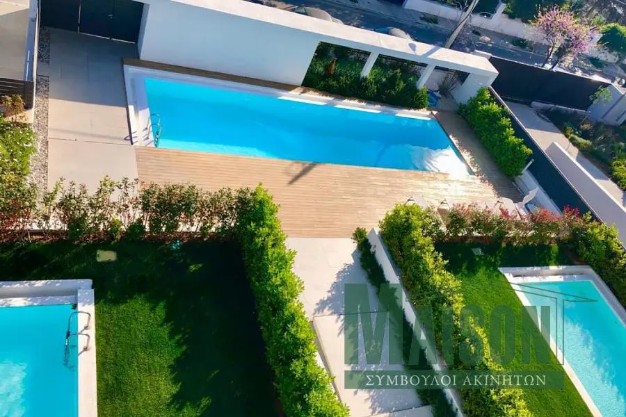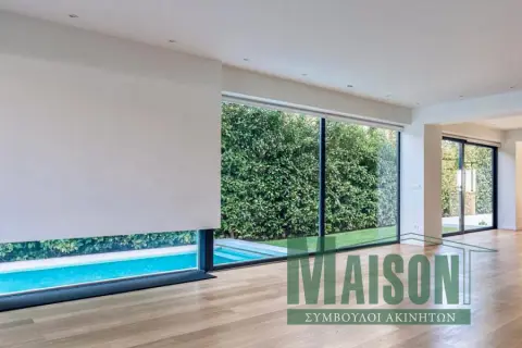 Ελληνικό Μεζονέτα, Επιφάνεια 305 τ.μ., Minimal, Προσόψεως, Επίπεδα 2, Νεόδμητο, Master υ/δ 3, Μπάνια 3, WC 1, Δωμάτιο υπηρεσίας, Τζάκι 1, Αυτόνομη θέρμανση, Ενδοδαπέδια θέρμανση, Αυτονομία Θέρμανσης ανά όροφο, Air condition, Playroom, Συναγερμός, Πόρτα ασφαλείας, Μεγάλες Βεράντες, Ηλιακός Θερμοσίφωνας, Κήπος, Εξωτερική πισίνα, Aποθήκη 1, Garage 2, Θέα θάλασσα µε κήπο περίπου 400τµ, µεγάλη ιδιόχρηστη θερµαινόµενη πισίνα υπερχείλισης, . Στο ισόγειο επιφάνειας βρίσκονται οι χώροι υποδοχής µε την κουζίνα, 1 µάστερ υπνοδωµάτιο, καθώς και το W.C. επισκεπτών. Το υπόγειο αποτελείται από ένα µεγάλο playroom, 2 µεγάλα µάστερ υπνοδωµάτια, 2η κουζίνα και laundryroom. Το υπόγειο διαθέτει εξωτερικό κήπο για φυσικό φωτισµό και αερισµό και µπορεί να ενωθεί µε το χώρο της πισίνας εξωτερικά µε σκάλα.