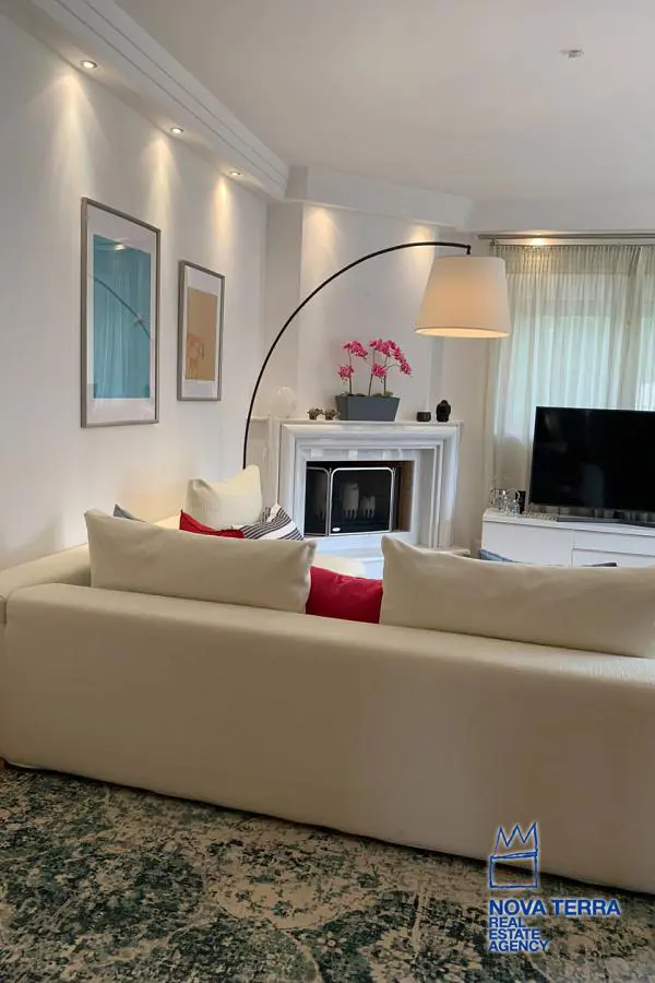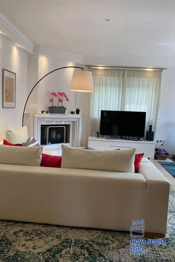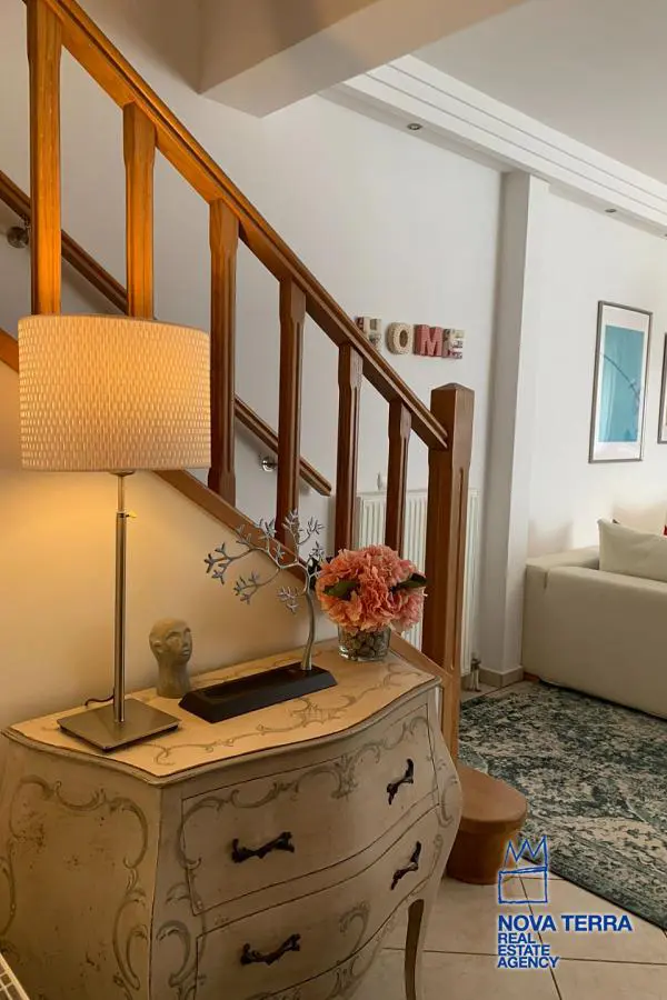ΓΛΥΦΑΔΑ - ΠΑΝΙΩΝΙΑ, μεζονέτα 2 επιπέδων συνολικής επιφάνειας 145 τ.μ. Αποτελείται από 3 υπνοδωμάτια το ένα εκ των οποίων master με en suite λουτρό, 1 σαλόνι με τζάκι και χώρο τραπεζαρίας, κουζίνα με δεύτερο ενεργειακό τζάκι και καθημερινό καθιστικό, ακόμα ένα μπάνιο και wc επισκεπτών. Είναι κατασκευασμένη το 2005 και διαθέτει κουφώματα αλουμινίου με διπλά τζάμια, ηλεκτρικά ρολά και σίτες, αυτόνομη θέρμανση πετρελαίου και ανά επίπεδο, καινούριο ηλιακό θερμοσίφωνα, πατώματα από πλακάκι και ξύλο καθώς και πόρτα ασφαλείας., συναγερμό, κλιματιστικά και ηλεκτρικές συσκευές. Στο ακίνητο αναλογεί μια αποθήκη 10 τ.μ. και 2 υπόγειες θέσεις στάθμευσης κωδικός ακινήτου: 46282, www.nova-terra.gr
