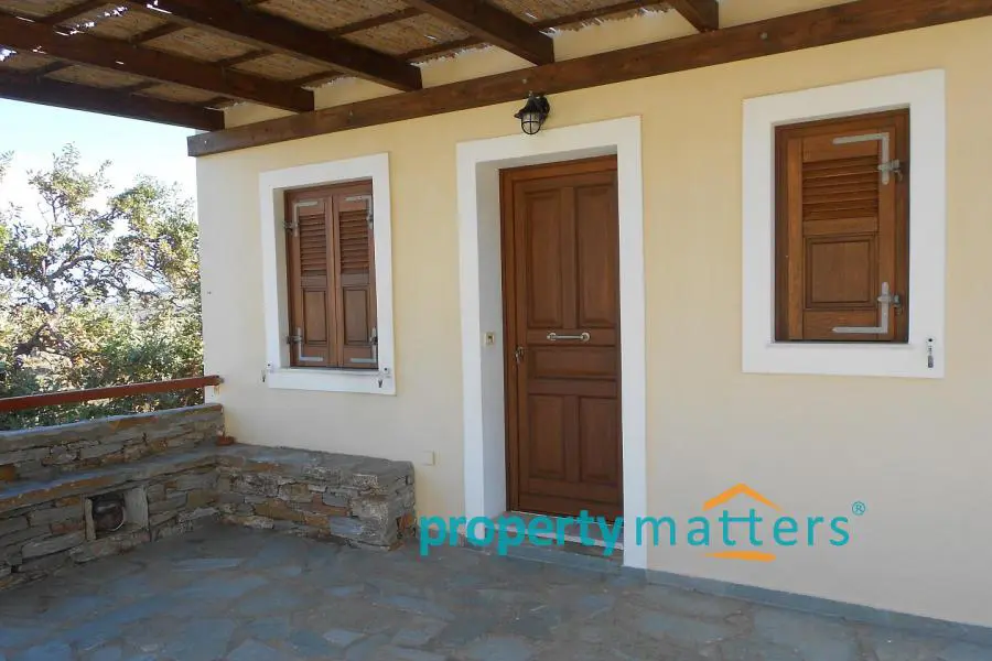 Ανάμεσα στο Βουρκάρι και τον Οτζιά, σε υψόμετρο 150 μ., μεζονέτα 120 τ.μ., 4 υ/δ, 2 μπάνια, τζάκι, με απεριόριστη θέα
