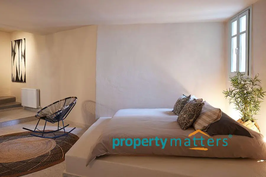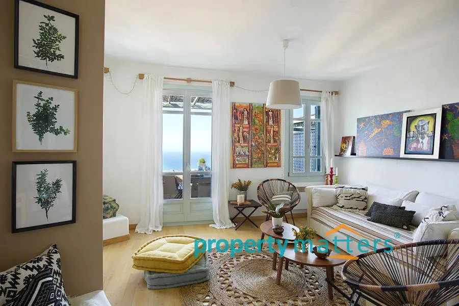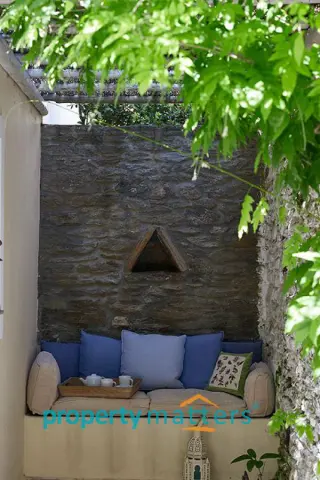 Το σπίτι είναι σε 3 επίπεδα. Στον Πάνω όροφο υπάρχει η κεντρική κρεβατοκαμαρα με το μπάνιο και δικιά του βεράντα. Στο ισόγειο, που είναι και η είσοδος, υπαρχει ενα wc, μια κουζίνα open plan με το σαλόνι όπου υπάρχει και ενα τζάκι. Σε αυτό το επίπεδο βρίσκεται η κύρια βεράντα. Στο κάτω όροφο έχει ενα μεγάλο χώρο, που είναι η δευτερη κρεβατοκάμαρα με το δικό του μπάνιο. Υπάρχει επίσης και αποθήκη. Το σπίτι βρίσκεται πάνω απο την Ιουλίδα. Απο τις βεράντες έχεις θέα όλη την χώρα. Είναι μέρος ενος συγκροτήματος που αποτελείται απο 6 κατοικίες. Έχει θέση πάρκινγκ πάνω στον δρόμο. Είναι επιπλωμένο.