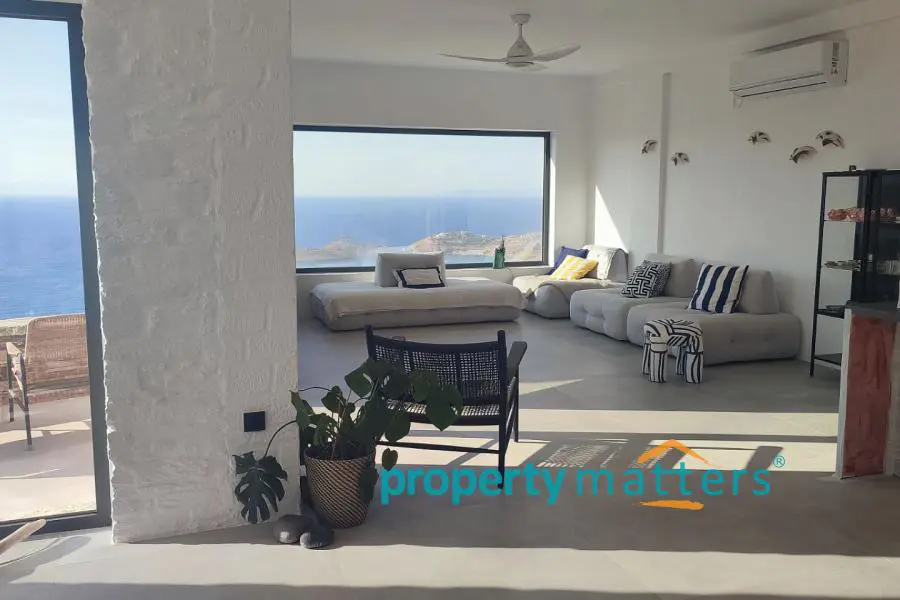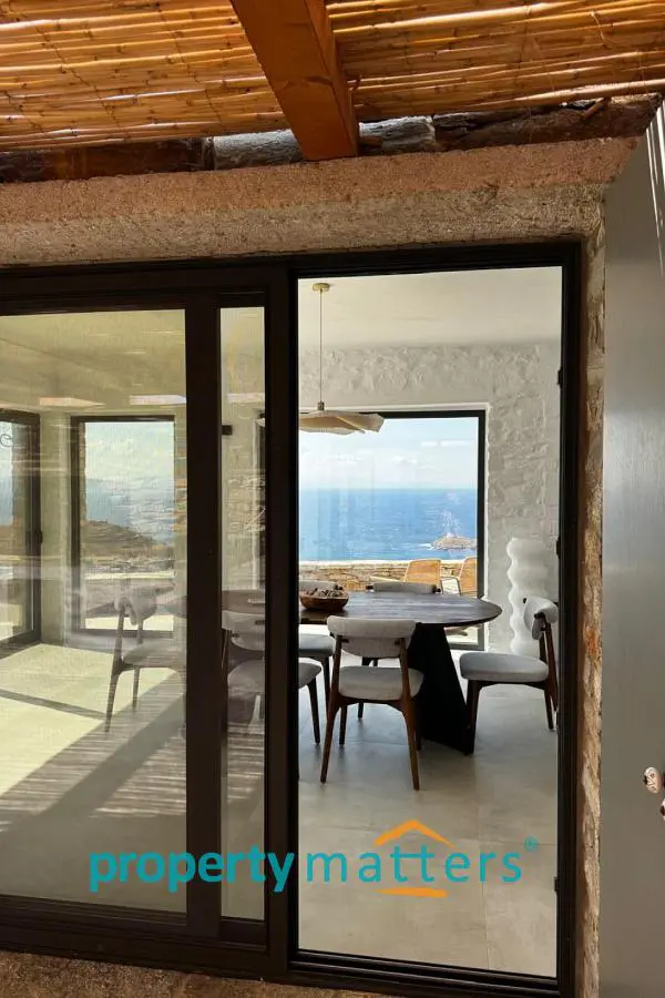 Αυτή η μοναδική, ανεξάρτητη κατοικία αποτελεί μέρος ενός συγκροτήματος τριών αυτόνομων κατοικιών, διατηρώντας την ιδιωτικότητα και την αποκλειστική χρήση ενός μεγάλου τμήματος του συνολικού οικοπέδου των 8.647 τ.μ. Το ακίνητο είναι σχεδιασμένο με σύγχρονη μίνιμαλ αισθητική, ενώ ενσωματώνει παραδοσιακά κυκλαδίτικα στοιχεία, προσφέροντας άνεση και υψηλή ποιότητα διαβίωσης. Ισόγειο Α' : - Ευρύχωρο καθιστικό με υπέροχη πανοραμική θέα - Πλήρως εξοπλισμένη ανοιχτή κουζίνα με ηλεκτρικές συσκευές - Τραπεζαρία με άμεση πρόσβαση στη μεγάλη βεράντα - Ένα υπνοδωμάτιο με δικό του μπάνιο - Ένα επιπλέον WC - Εξωτερικός χώρος με ιδιωτική πισίνα, BBQ, πέτρινο χτιστό καναπέ, πέργκολα και εξωτερικό ντους - Κήπος και υπόγειοι αποθηκευτικοί χώροι Ισόγειο Β': - Τρία ευρύχωρα υπνοδωμάτια, το καθένα με το δικό του μπάνιο - Πανοραμική θέα στο ηλιοβασίλεμα, τον φάρο του Αγίου Νικολάου, το λιμάνι και τη Μακρόνησο - έξοδος σε ιδιωτικό κήπο Εξωτερικοί Χώροι & Υποδομές: - Ιδιωτικός ακάλυπτος χώρος - Ασκεπής πισίνα - Μηχανοστάσιο πισίνας - Δύο υπόγειες δεξαμενές νερού για οικιακή χρήση και συντήρηση της πισίνας Αυτή η κατοικία προσφέρει την απόλυτη αίσθηση ιδιωτικότητας και χαλάρωσης, με απρόσκοπτη θέα στο Αιγαίο και σύγχρονες ανέσεις, καθιστώντας την ιδανική επιλογή για όσους αναζητούν ένα πολυτελές εξοχικό σπίτι στην Κέα.
