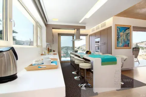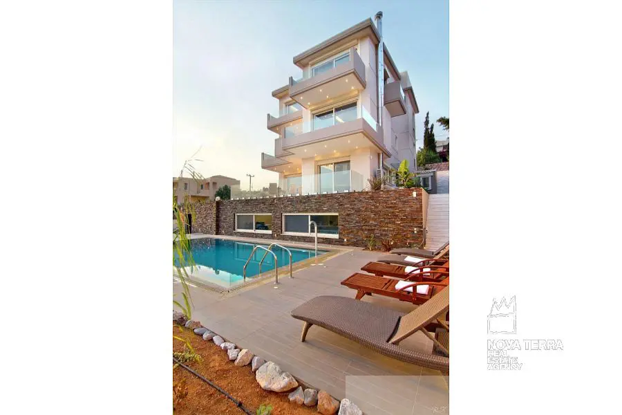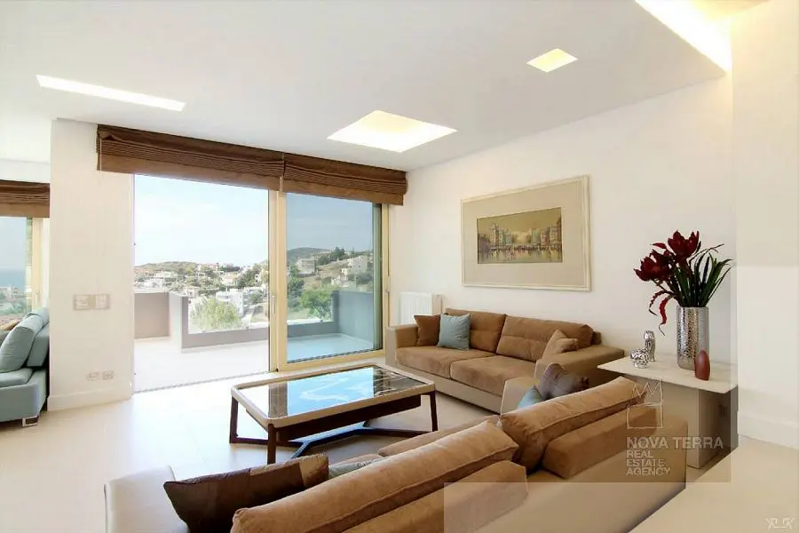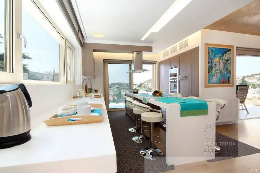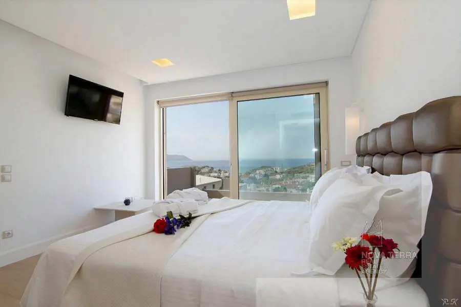 Θέα θάλασσα από όλα τα επίπεδα. Πλήρως εξοπλισμένο, τηλεοράσεις, Αντλία θερμότητας, Πισίνα αντίστροφης κολύμβησης, Αυτονομία θέρμανσης 10 ζωνων, πανάκριβα έπιπλα + λευκά είδη. Καταπληκτικό!!