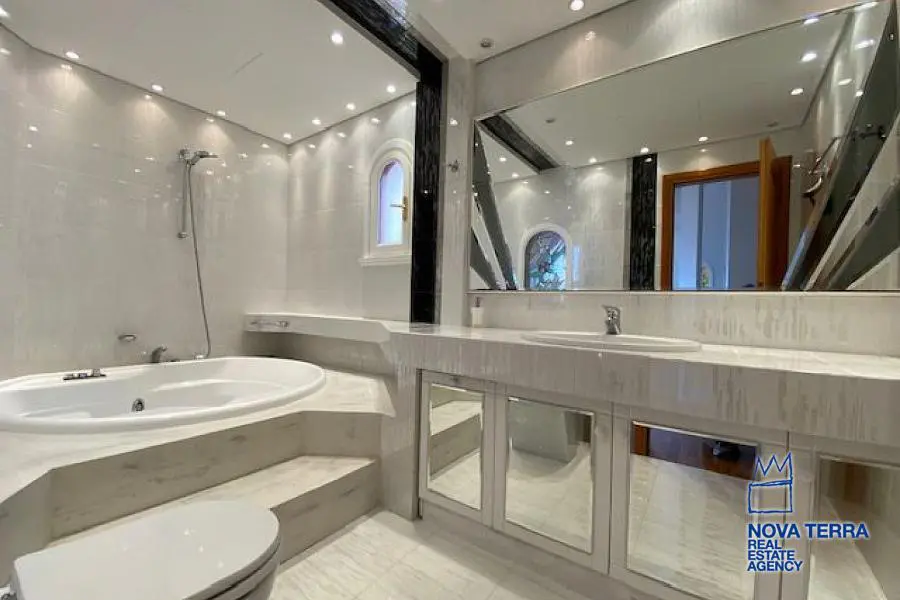 Βίλλα lux κατασκευής, μονοκατοικία ανεξάρτητη. Αποτελείται από σαλόνι μεγάλο με τζάκι, κουζίνα με όλα τα ηλεκτρικά GE, πάγκοι γρανίτες, 5 υπνοδωμάτια στον α' όροφο, το 2 master συν 1 πλήρες μπάνιο. Β' όροφος με 1 υπνοδωμάτιο ensuite 80τμ, με τζάκι. Ισόγειο κήπου με 2 υπνοδωμάτια, μεγάλη κουζίνα με θέα μπροστά στον κήπο, τζάκι, BBQ+φούρνος, πισίνα και απεριόριστη ΘΕΑ όλου του Σαρωνικού από κάθε σημείο της κατοικίας.