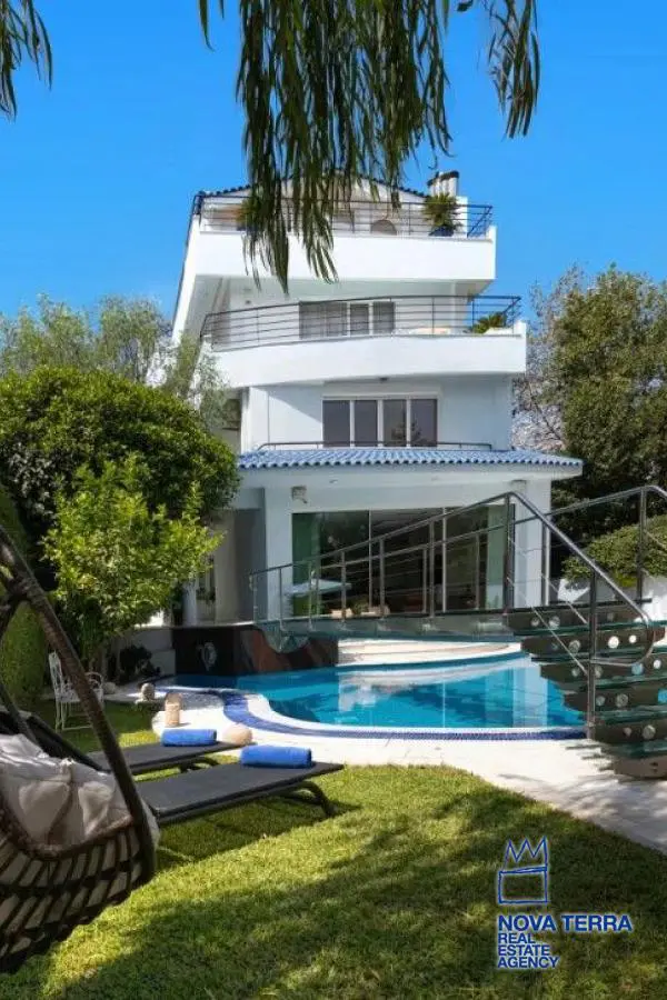 Γλυφάδα – Πολυτελής Βίλα 650τμ με ιδιωτική πισίνα και κήπο, μόλις 150μ από την παραλία. ΔΙΑΘΕΣΙΜΗ ΑΠΟ 01 ΔΕΚΕΜΒΡΙΟΥ 2025 ΓΙΑ ΟΛΟΧΡΟΝΙΚΗ ΕΝΟΙΚΙΑΣΗ. Εντυπωσιακή τριώροφη βίλα, πλήρως επιπλωμένη, διαθέτει 6 ανακαινισμένα υπνοδωμάτια, 2 ευρύχωρα σαλόνια με ενεργειακά τζάκια, 2 κουζίνες, τραπεζαρία, 5 μπάνια και 1 WC, καθώς και ένα επιπλέον δωμάτιο τηλεόρασης με γραφείο. Επίσης περιλαμβάνει ένα εξοπλισμένο ανεξάρτητο διαμέρισμα στο ημιυπόγειο, καθώς και χώρο μπιλιάρδου και σάουνα. Στο τρίτο επίπεδο υπάρχει ένα εντελώς ανεξάρτητο διαμέρισμα με δική του είσοδο από τον πίσω δρόμο, το οποίο χρησιμοποιείται από τον ιδιοκτήτη, διασφαλίζοντας την απόλυτη ιδιωτικότητα σας. Ιδανική επιλογή για όσους αναζητούν έναν πολυτελή και άνετο χώρο σε προνομιακή παραθαλάσσια τοποθεσία.