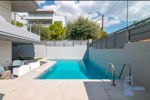 Μονοκατοικια διπλα στο Γκολφ Γλυφαδας , πληρως ανακαινισμενη το 2020, επιπλωμενη ή μη, με πισινα και μεγαλο αιθριο χωρο στον 2ο οροφο, με ασανσερ, 2 μπαρμπεκιου, ξυλοφουρνο, γυμναστηριο, ιδιωτικο κλειστο χωρο παρκινκ ,παγομηχανη, ξυλινο πατωμα, μπαρ εξωτερικο, ηλεκτρικη τεντα κηπου