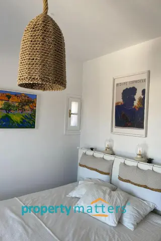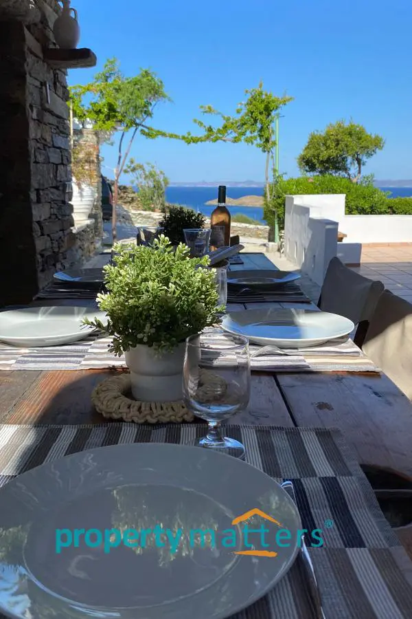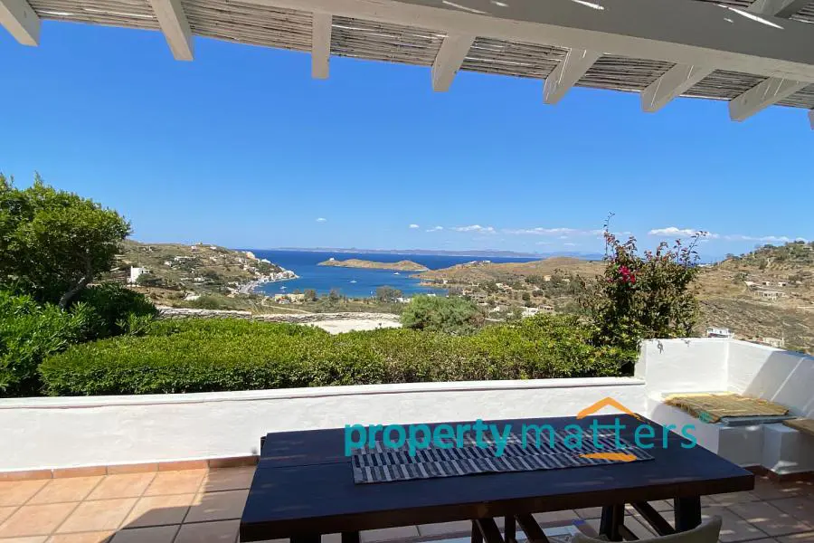 KEA is the closest island in the Cyclades to the mainland. From the port of Lavrio, located 30 km south of Athens International Airport, ferries arrive in 1 hour. The villa is located in VOURKARI, 1 km from the port of Korissia where the ferries arrive, close to the beaches of Otzias and Galieskari and 15 minutes from the famous historic town of Ioulis, perched on the mountain and totally pedestrianized. The house is located above the famous bay of Vourkari where the most beautiful yachts in Greece anchor in season, 2 minutes from its trendy restaurants and bistros. Perched on a hill, its location and orientation offers a fantastic view of the sea and exceptional sunsets. The house has Wifi, air conditioning, a bluetooth speaker Capacity: 2 double bedrooms, 1 triple bedroom, a 2-seater sofa bed. On the upper level, the house, equipped with WIFI (wifi number on box placed in the serving hatch), includes : • A large air-conditioned living room with a sofa and a 2-seater sofa bed • An equipped kitchen • An air-conditioned bedroom with double bed and private balcony facing the sea • A bathroom with shower and toilets. • A small stone storeroom of 15m2, houses a washing machine, a separate toilet, beach equipment and storage. Outside: In front, on the west side, a terrace-solarium partly pergola with sea view, an outdoor shower, a pergola with sea view equipped with a large dining table and its BBQ and bread oven built in stones. On the lower level, there are: • An air-conditioned studio, sea view, with a double bed, a kitchenette with oven and fridge, a bathroom with shower and toilets. • Another air-conditioned bedroom with a double bed, a single bed, a fridge and a bathroom with shower and toilets. • These two rooms communicate. The two rooms have an independent access from the outside