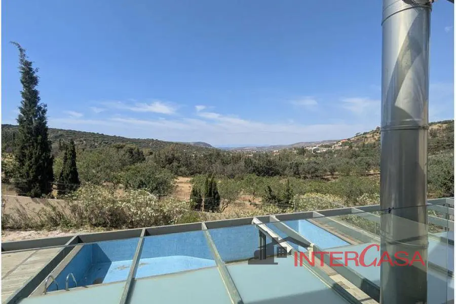 Mονοκατοικία, συνολικής επιφάνειας 460,06 τ.μ. αποτελούμενη από υπόγειο, ισόγειο & δώμα με πρόσβαση στην βεράντα με θέα θάλασσα σε αγροτεμάχιο 4,5 στρ. Στον περιβάλλοντα χώρο της διώροφης κατοικίας υπάρχει κλειστό γκαράζ, φυλάκιο, βοηθητικό κτίσμα, λεβητοστάσιο, χώρος για γήπεδο και πισίνα επιφανείας 60 τ.μ.