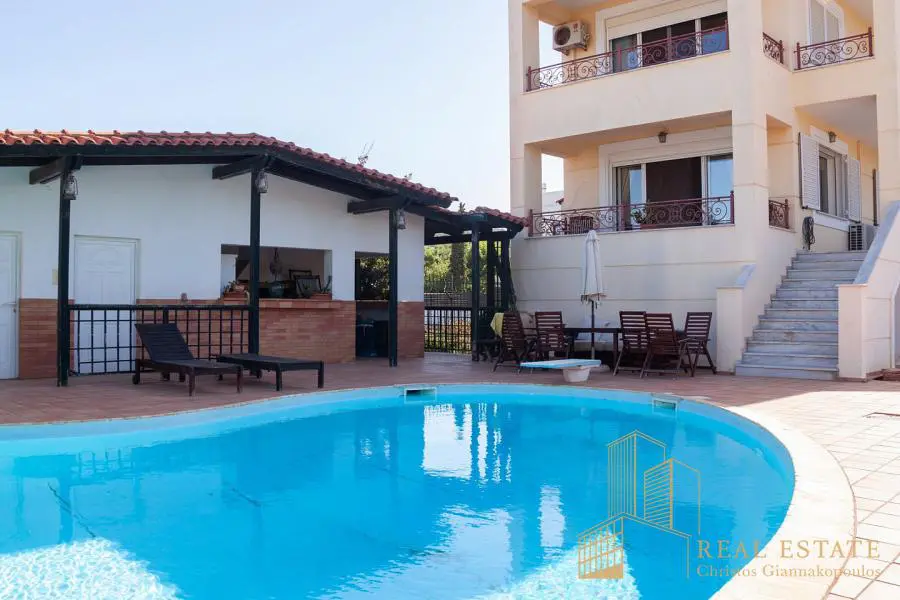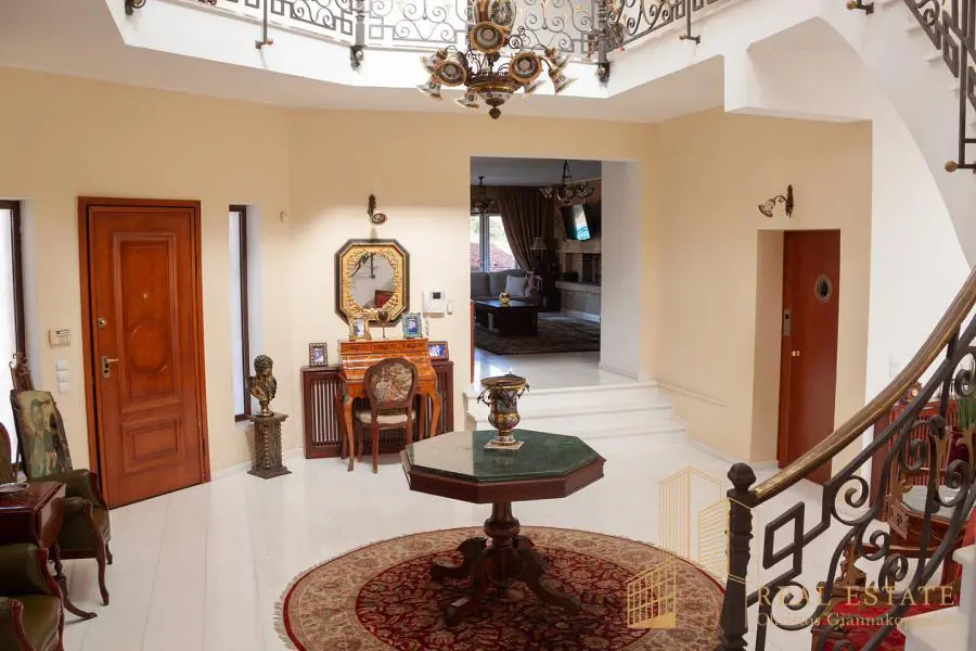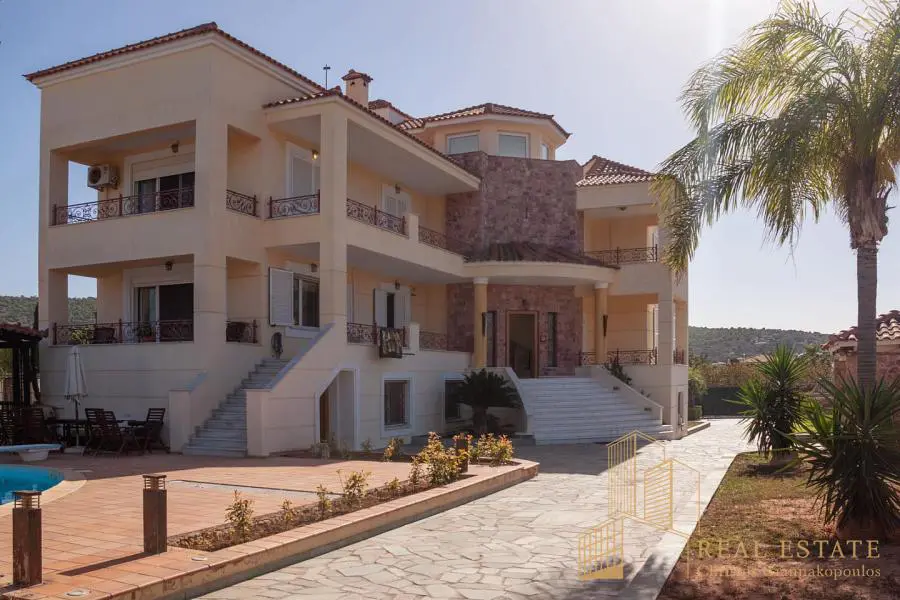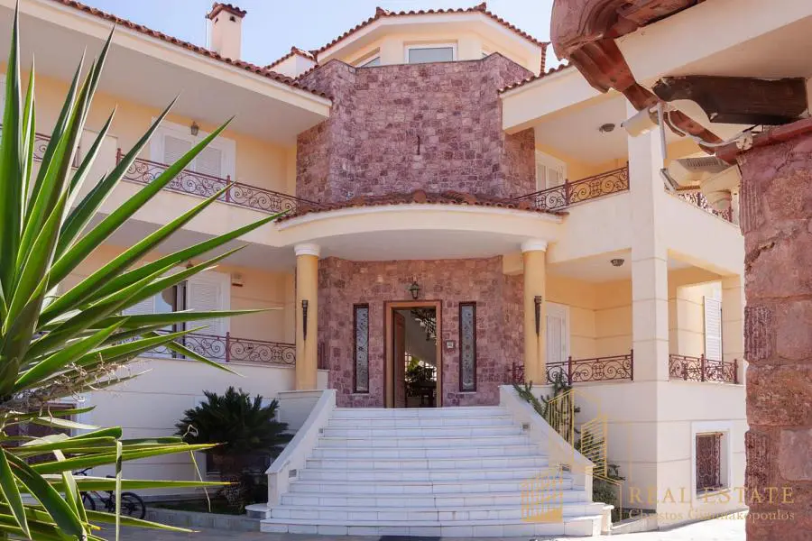 ΒΑΡΗ ΠΩΛΕΙΤΑΙ ΥΠΕΡΠΟΛΥΤΕΛΗΣ ΑΡΧΟΝΤΙΚΗ ΝΕΟΚΛΑΣΣΙΚΗ ΒΙΛΛΑ ΣΥΝΟΛΙΚΟΥ ΕΜΒΑΔΟΥ 900 ΤΜ ΜΕ ΟΙΚΟΠΕΔΟ 1900 ΤΜ ΣΕ ΩΡΑΙΑ, ΗΣΥΧΗ ΓΕΙΤΟΝΙΑ ΜΕ ΟΜΟΡΦΕΣ ΚΑΤΟΙΚΙΕΣ. ΤΟ ΑΚΙΝΗΤΟ ΑΠΟΤΕΛΕΙΤΑΙ ΑΠΟ ΤΗΝ ΚΥΡΙΑ ΚΑΤΟΙΚΙΑ ΠΟΥ ΑΝΑΠΤΥΣΣΕΤΑΙ ΣΕ 4 ΕΠΙΠΕΔΑ, ΔΙΑΘΕΤΕΙ 2 ΣΑΛΟΝΙΑ ΜΕ ΤΖΑΚΙ, ΤΡΑΠΕΖΑΡΙΑ, 2 ΚΟΥΖΙΝΕΣ, 7 Υ/Δ (5 Master), 6 ΜΠΑΝΙΑ, WC, PLAY-ROOM, LAUNDRY-ROOM. ΔΙΟΡΟΦΟ ΞΕΝΩΝΑ ΤΥΠΟΥ ΜΥΛΟΥ. ΜΙΑ ΙΣΟΓΕΙΑ ΑΝΕΞΑΡΤΗΤΗ ΚΑΤΟΙΚΙΑ ΟΙΚΙΑΚΟΥ ΠΡΟΣΩΠΙΚΟΥ ΣΤΟ ΚΗΠΟ ΜΕ ΥΔ, ΚΟΥΖΙΝΑ ΚΑΙ ΜΠΑΝΙΟ. ΣΤΕΓΑΣΜΕΝΟ ΚΑΙ ΔΙΑΜΟΡΦΩΜΕΝΟ ΧΩΡΟ BBQ ΜΕ ΥΠΑΙΘΡΙΑ ΤΡΑΠΕΖΑΡΙΑ ΣΕ ΠΑΝΕΜΟΡΦΟ ΚΗΠΟ ΜΕ ΓΚΑΖΟΝ ΚΑΙ ΔΕΝΔΡΑ ΜΕ ΜΕΓΑΛΗ ΠΙΣΙΝΑ . ΥΠΟΓΕΙΟ ΧΩΡΟ ΣΤΑΘΜΕΥΣΗΣ 5 ΟΧΗΜΑΤΩΝ, ΑΠΟΘΗΚΗ, ΣΟΦΙΤΑ. ΘΕΡΜΑΝΣΗ ΜΕ ΠΕΤΡΕΛΑΙΟ, ΚΟΥΦΩΜΑΤΑ ΑΛΟΥΜΙΝΙΟΥ, ΔΑΠΕΔΑ ΑΠΟ ΜΑΡΜΑΡΟ ΚΑΙ ΞΥΛΟ.