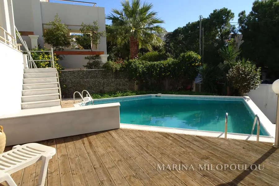 Βούλα - Πηγαδάκια, Μονοκατοικία συνολικής επιφανείας 420τμ εντός οικοπέδου 520τμ με πισίνα. Υπερυψωμένο ισόγειο επιφανείας 147τμ, το οποίο περιλαμβάνει μεγάλο χώρο υποδοχής - τραπεζαρίας ευρύχωρη χωριστή κουζίνα, 1 μεγάλο master υ/δ, 1 wc, μεγάλη βεράντα. Στον 1ο όροφο επιφανείας 117τμ, 3 υ/δ -το 1 master - συν 1 επιπλέον μπάνιο, μεγάλες βεράντες. Το υπόγειο επιφανείας 150τμ περιλαμβάνει ένα διαμέρισμα με καθιστικό υ/δ, μπάνιο και μπορεί να λειτουργήσει ανεξάρτητα. Στο ίδιο επίπεδο, laundry room αποθήκες και λεβητοστάσιο. Η κατοικία διαθέτει πισίνα 36τμ, διπλό σύστημα θέρμανσης πετρελαίου και νερού, διπλά τζάμια, σίτες, 2 προστατευμένες θέσεις στάθμευσης ισογείου. Φωτεινή ηλιόλουστη κατοικία με μεγάλα ανοίγματα και Νότιο προσανατολισμό.. Ησυχο σημείο σε εξαιρετική οικιστική περιοχή . Απόσταση από την τοπική αγορά 450μέτρα, απόσταση από την οργανωμένη παραλία Apollon Divani Pallas 650 μέτρα. Τιμή ζώνης 2250ευρώ.