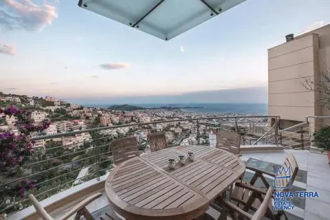 Πωλείται πολυτελής μονοκατοικία συνολικού εμβαδόν 850 τετραγωνικών μέτρων σε μοναδικό σημείο στο Πανόραμα της Βούλας , με απεριόριστη αμφιθεατρική και ανεμπόδιστη θέα σε όλο τον Σαρωνικό. Η μονοκατοικία έχει πρόσβαση από δύο ξεχωριστούς δρόμους . Είναι χτισμένη με άριστη και αυστηρή επιλογή υλικών , διαθέτει περιβάλλοντα χώρο με γκαζόν και τεράστιες βεράντες. Περιλαμβάνει εσωτερική-εξωτερική πισίνα με τους ανάλογους βοηθητικούς χώρους ενδιαίτησης και μπάνιου, μεγάλο BBQ ,αυτόματο σύστημα ποτίσματος ,εγκατεστημένο συναγερμό με κάμερες. Το κεντρικό σαλόνι της οικίας είναι πολυτελέστατο με λευκά μάρμαρα Διονύσου και η τραπεζαρία στον ίδιο χώρο σε άλλο επίπεδο, φωτεινή και με θέα. Η κουζίνα που βρίσκεται στο ίδιο επίπεδο διαθέτει δικό της τζάκι , καθιστικό και τραπεζαρία. Τα υπνοδωμάτια της μονοκατοικίας είναι τέσσερα en suite μεγάλα με αντίστοιχα μπαλκόνια και θέα , ευρύχωρα και λειτουργικά . Περιλαμβάνεται ξενώνας αυτόνομος , ενιαίος χώρος play-room και Gym, ξεχωριστό γραφείο και σε όλα αυτά υπάρχουν δρύινα πατώματα και ντουλάπες. Στα μπάνια έχει γίνει επιλογή υλικών με άρτιο εξοπλισμό. Το ασανσέρ για όλα τα επίπεδα της οικίας είναι χωρητικότητας δέκα ατόμων. Το σύστημα θέρμανσης είναι με ενδοδαπέδια και κάθε χώρος έχει το δικό του σύστημα κλιματισμού. Ο κλειστός χώρος στάθμευσης επαρκεί για τρία αυτοκίνητα , εκεί βρίσκεται η αποθήκη , το laundry και το μηχανοστάσιο με την γεννήτρια ρεύματος για την αυτονομία.