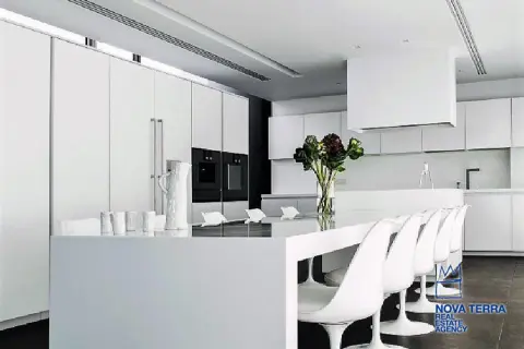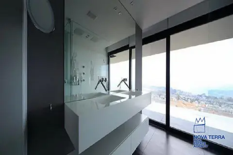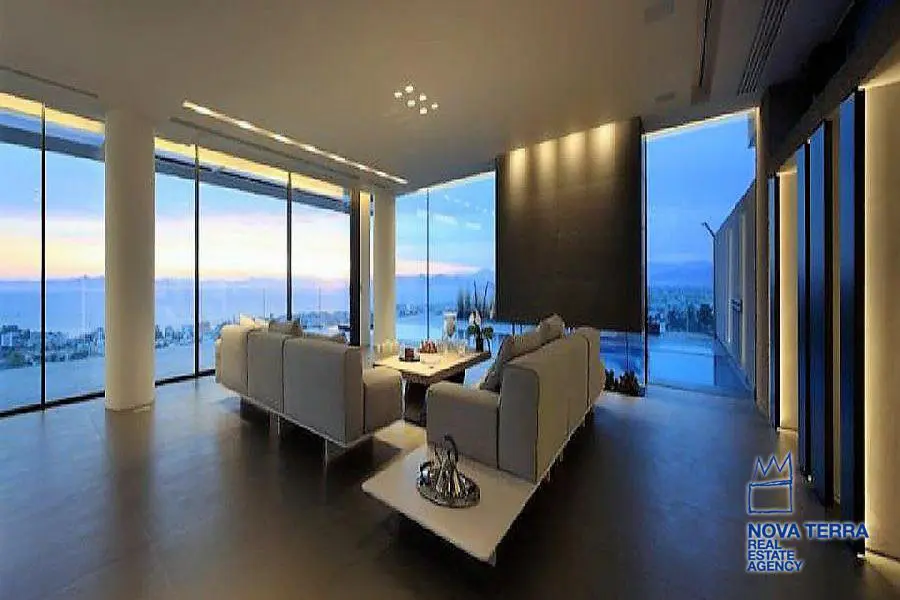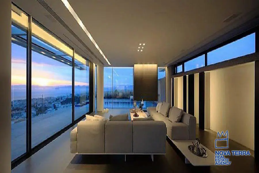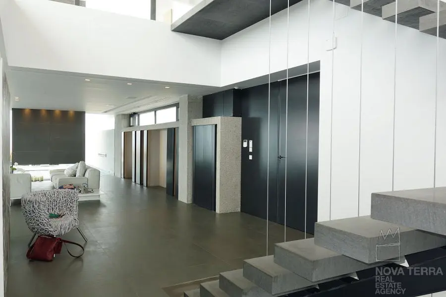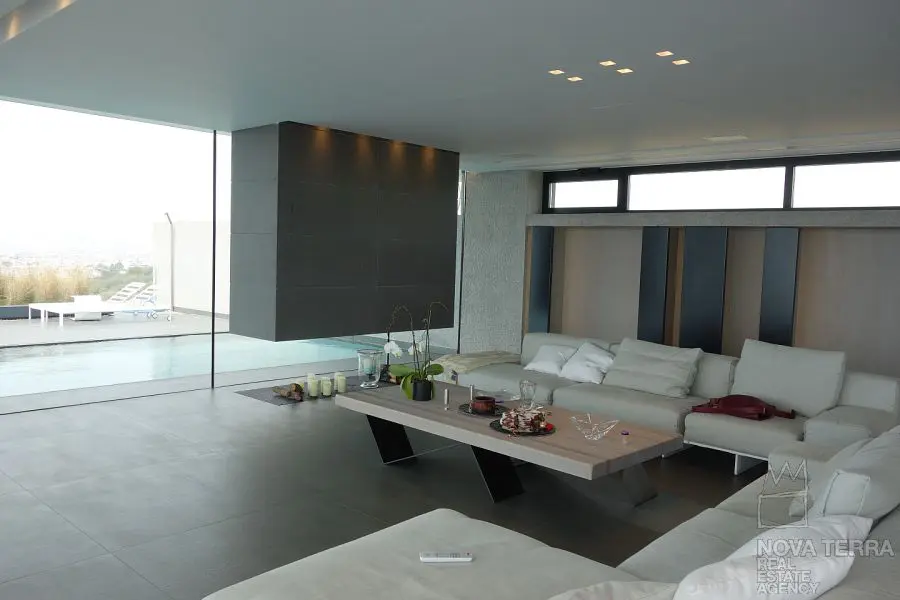 Η σωστή διάχυση του φωτός, η γεωμετρία των χώρων ως παράγοντας ισορροπίας και η σύγχρονη ερμηνεία της ελληνικής αυλής, εδώ σε μια εντυπωσιακή ταράτσα με πισίνα και θέα, αποτελούν σήμα κατατεθέν της φιλοσοφίας των αρχιτεκτόνων. Λόγω της έντονης κλίσης του εδάφους, αντίθετα με ό,τι συνηθίζεται, η είσοδος και οι κοινόχρηστοι χώροι τοποθετήθηκαν στο επίπεδο του ορόφου, ενώ τα υπνοδωμάτια και τα λουτρά στο ισόγειο. Τα δωμάτια ορίστηκαν ως λειτουργικές περιοχές μέσα σε open-plan χώρους με γραμμική διάταξη και θέα στη θάλασσα. Τα κυρίαρχα υλικά –εμφανές σκυρόδεμα, σοβάς και καμένος γρανίτης– εξωτερικά εναρμονίζουν το κτίριο με το τοπίο, ενώ στους εσωτερικούς χώρους προσθέτουν την υφή και το χρώμα της διαχρονικά μοντέρνας αισθητικής. Σημείωση: Το σημείο στο χάρτη είναι ενδεικτικό δεν καθορίζει την πραγματική διεύθυνση του ακινήτου! - Για την υπόδειξη των ακινήτων είναι απαραίτητη η υπόδειξη της αστυνομικής ταυτότητας και του Α.Φ.Μ. σας σύμφωνα με τον Ν.4072/11-4-2012 ΦΕΚ 86 Α