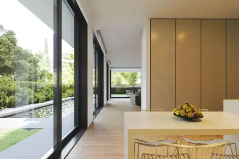 A modern detached house of 680m2 and a total area is ideally located in a quiet residential area of Filothei. The property develops in 4 levels: the ground floor of 195m2, the first floor of 175m2, the second floor of 90m2 and the basement of 220m2 (160m2 the parking space and the auxiliary spaces of 60m2.) The ground floor has access to the garden (185m2) with a swimming pool from every space and consists of a kitchen with two entrances, a WC and room with its own bathroom that could be used as a service room or office space. The first floor comprises of three spacious en suite bedrooms (1 master). The master bedroom offers a walk in closet and has private access to an attic. At the same level there is located a sitting area/ family room with a kitchenette while the two bedrooms and the family room offers access to a corner terrace. The second floor comprises of 2 more ensuite bedrooms, and a sitting area with an office space, all having access to a terrace with unique views. This floor has direct access to the garage through the elevator, giving the opportunity of an independent floor. The basement level of 220m2 has access through a private elevator or the internal staircase. Consists of a shared parking area, a storage room and a laundry/pantry room. Features • 6 bedrooms • 6 bathrooms • 1 WC • Elevator • Internal staircase • Service room • Swimming pool • Garden • Shared parking space
