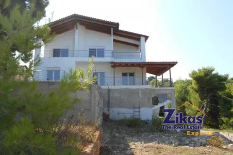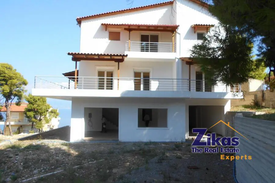 Μονοκατοικία εξαιρετικής κατασκευής συνολικού εμββαδού 378 τ.μ.Στο ισόγειο υπάρχουν εσωτερικά parking,το λεβητοστάσιο και ένα ξεχωριστό διαμέρισμα με υπνοδωμάτιο,καθιστικό και κουζίνα όπου μπορεί να χρησιμοποιηθεί ως χώρος φιλοξενίας.Με εσωτερική σκάλα οδηγούμαστε στον 1ο όροφο όπου υπάρχουν τέσσερα υπνοδωμάτια,μικρή κουζίνα,μπάνιο και χώρος υδρομασάζ.Στον 2ο όροφο υπάρχει μεγάλο καθιστικό με τζάκι και η κυρίως κουζίνα.Έχει φτιαχτει ήδη η θεμελίωση για την κατασκευή μεγάλης πισίνας.Η κατοικία περιστοιχίζεται από τεράστιες βεράντες που σου χαρίζουν μοναδική θέα προς τον Ευβοϊκό κόλπο.Η απόσταση από την θάλασσα είναι 150 m περίπου.Υπάρχουν πολλές δυνατότητες διαμόρφωσης εξωτερικού και εσωτερικού χώρου έτσι ώστε η κατοικία να προσαρμοστεί στην αισθητική του τελικού ιδιοκτήτη.