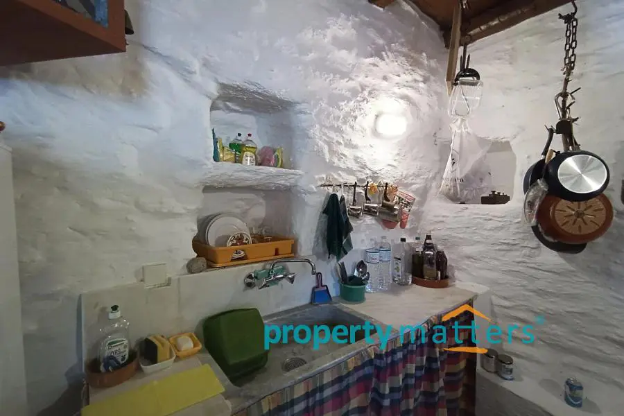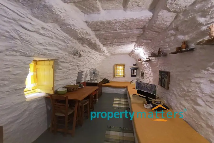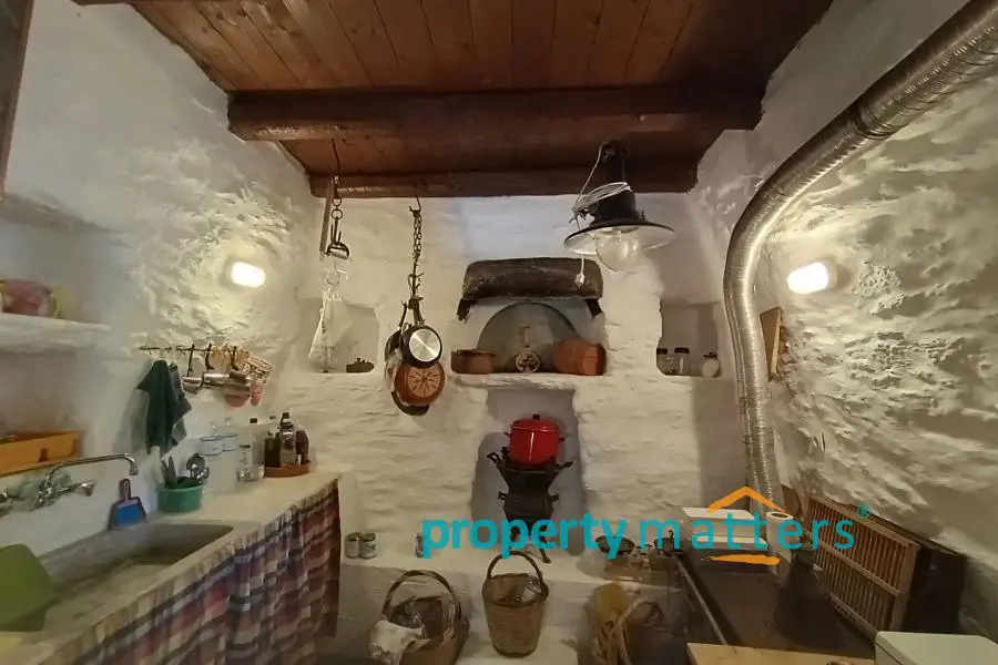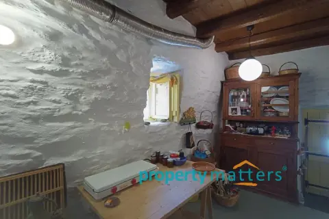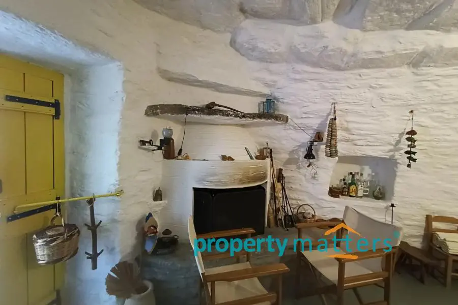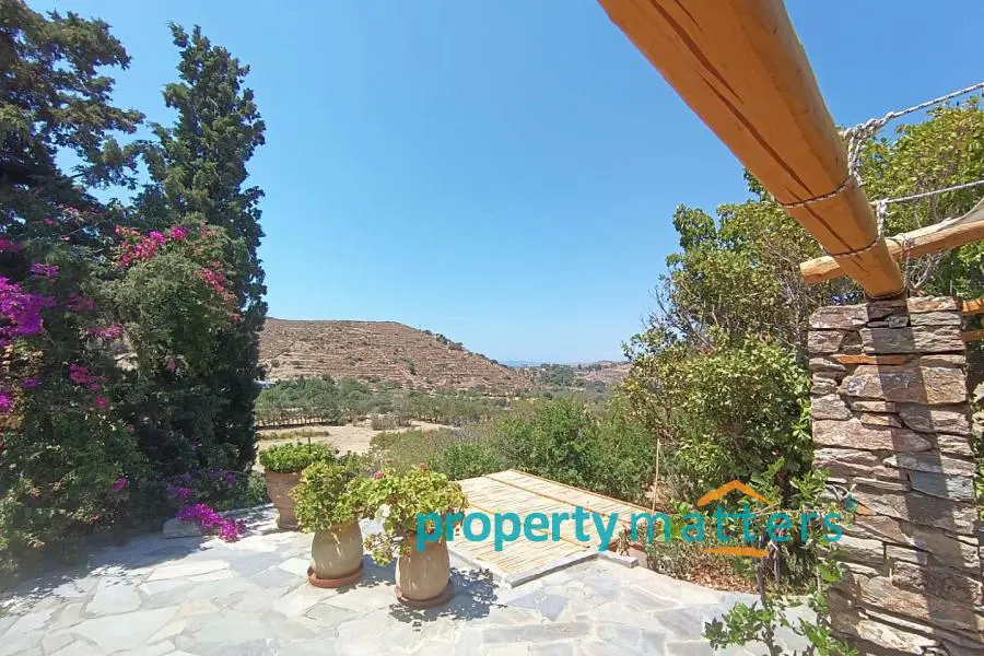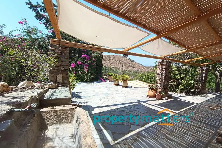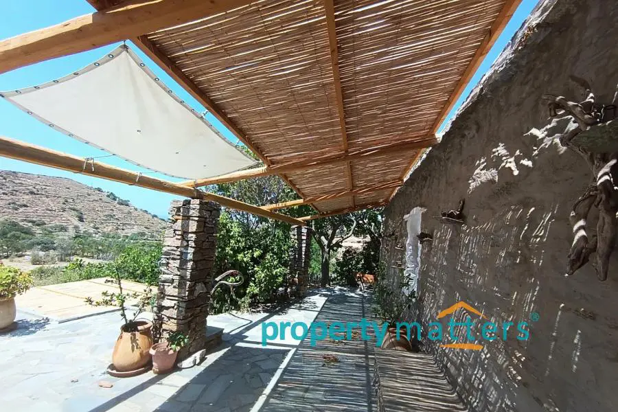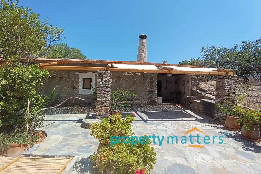 Παραδοσιακή τζιώτικη καθικιά, ανακαινισμένη με μεγάλη προσοχή στην αρχιτεκτονική ώστε να διατηρήσει όλα τα παλαιά στοιχεία αλλά να είναι και λειτουργική με τις ανέσεις του σήμερα. Το ιδιόκτητο κτήμα 5,57 στρεμμάτων είναι γεμάτο δέντρα καρποφόρα (λεμονιές, αμυγδαλιές, συκιές κτλ) και περίπου 70 παραγωγικά ελαιόδεντρα. Η θέα είναι προς την εξοχή και το πέλαγος στη συνέχεια του Βουρκαρίου. Έχει απόλυτη ησυχία και αίσθηση ηρεμίας, ενώ βρίσκεται σε περιπατητική απόσταση ή λίγα λεπτά με το αυτοκίνητο από τις δημοφιλείς παραλίες και εστιατόρια του Βουρκαρίου και του Οτζιά. Είναι ένα μοναδικό οίκημα ιδιαιτέρας αρχιτεκτονικής και χειροποίητων κατασκευών με τεράστιες αυλές με πέργκολες, ώστε σε κάθε καιρική συνθήκη υπάρχει εξωτερικός προστατευμένος χώρος. Ιδιαίτερο στοιχείο του κτήματος, το μεγάλο παραδοσιακό αλώνι σε άριστη κατάσταση