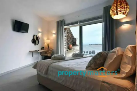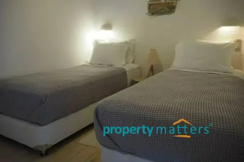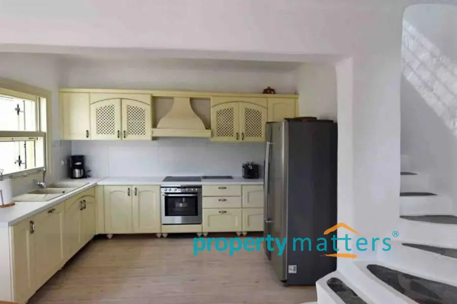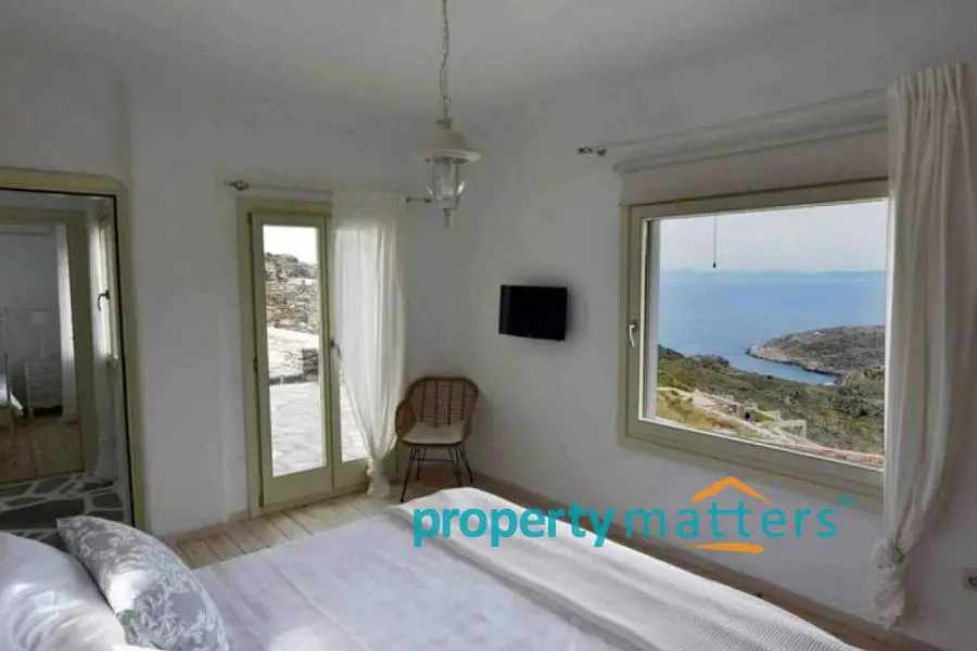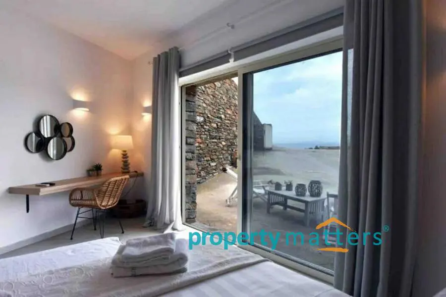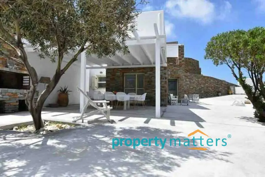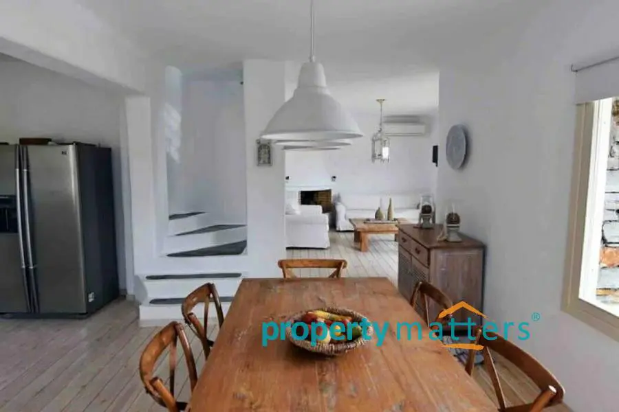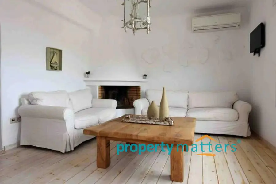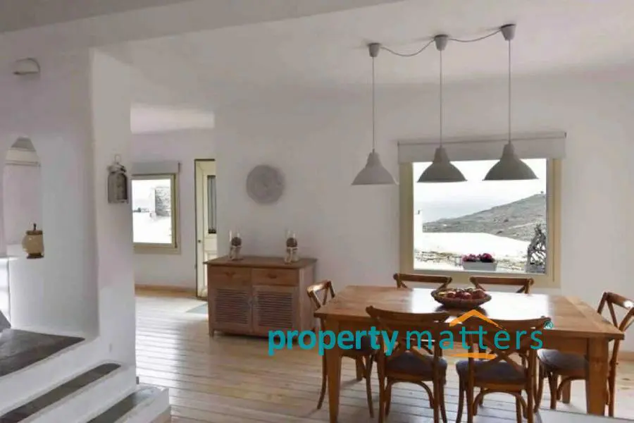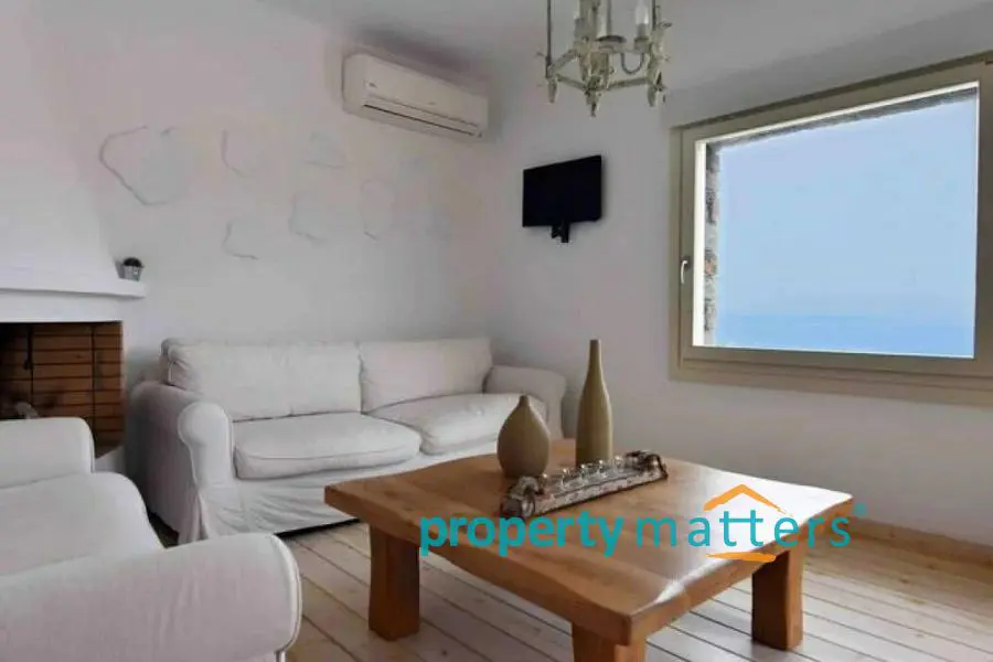 Α spacious Villa only 2 minutes drive from Koundouros Beach. The House is only 2 to 3 minutes by car from Koundouros, with its sandy beaches, water sports, restaurants and 2 beach bars. Below the villa, 2 minutes at the most by car, is another small sandy beach - Kastellakia beach, ideal if you want a bit of peace and quiet. The villa has been beautifully decorated and gives one a feeling of peace and tranquility. The property is on two levels and consists of a living room with a fireplace a large dining area with a table for 8 people and a fully equipped open- plan kitchen. On this ground level there is also a large master bedroom, which leads on to the terrace and an en- suite bathroom. Connected to the master bedroom is a small bedroom with a sofa bed, ideal for a child or young adult, with a bathroom. On the first floor there is a second large bedroom with a double bed, a forth bedroom with a small double bed and bathroom with a shower. Outside, the villa has a large terrace with a BBQ and shaded dining area for 8 people, a built- in sofa area with a pergola from where one can sit and enjoy the sea and sunset views, as well as ample space to lay back and relax on the sunbeds and chaise lounge. There is a parking area for 2 or 3 cars.