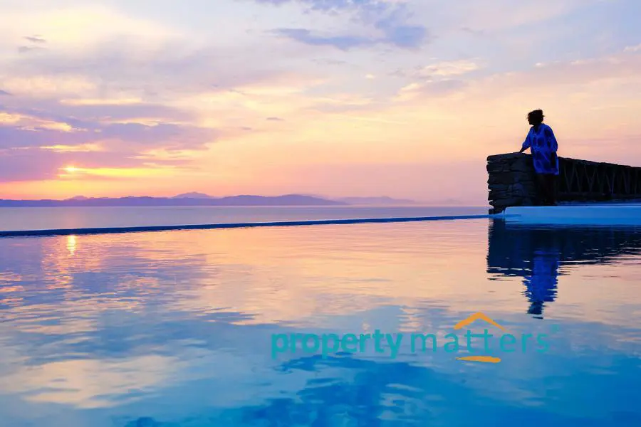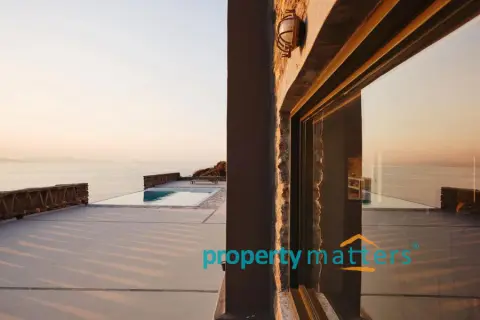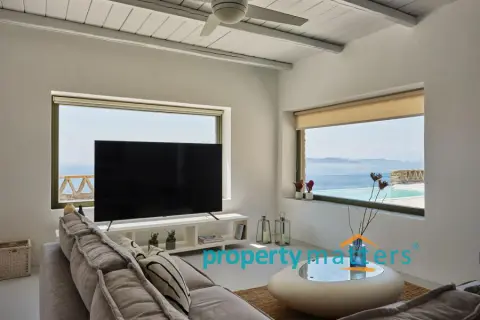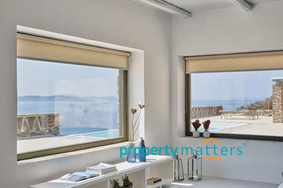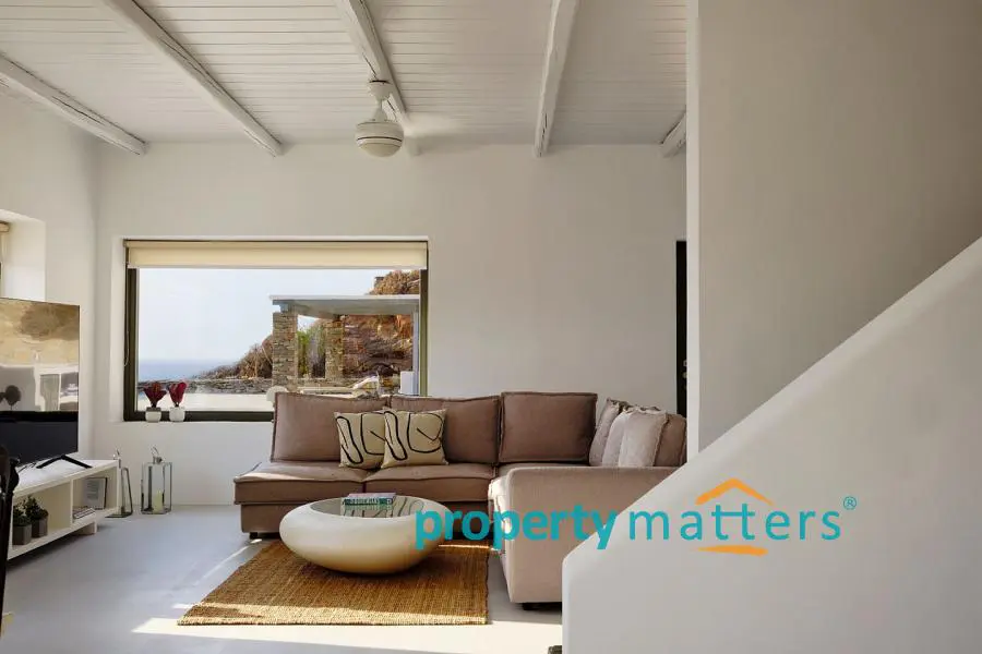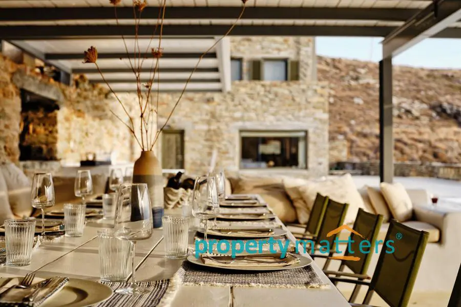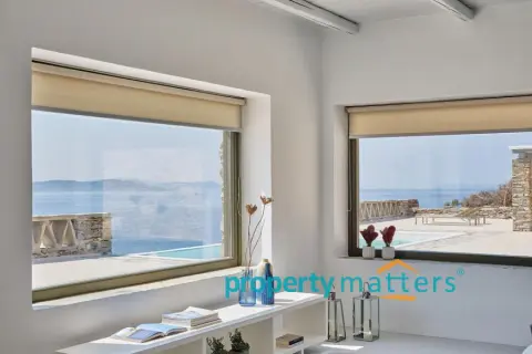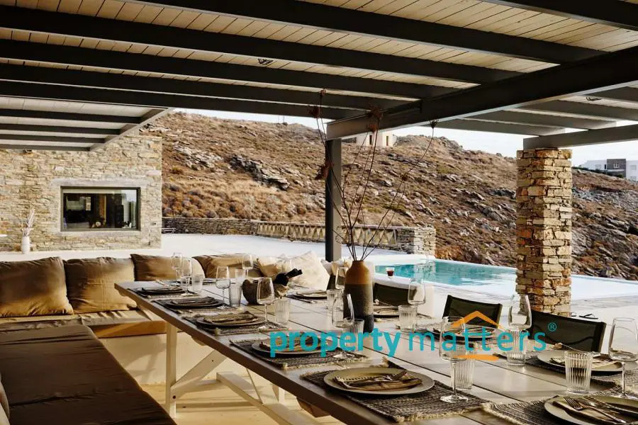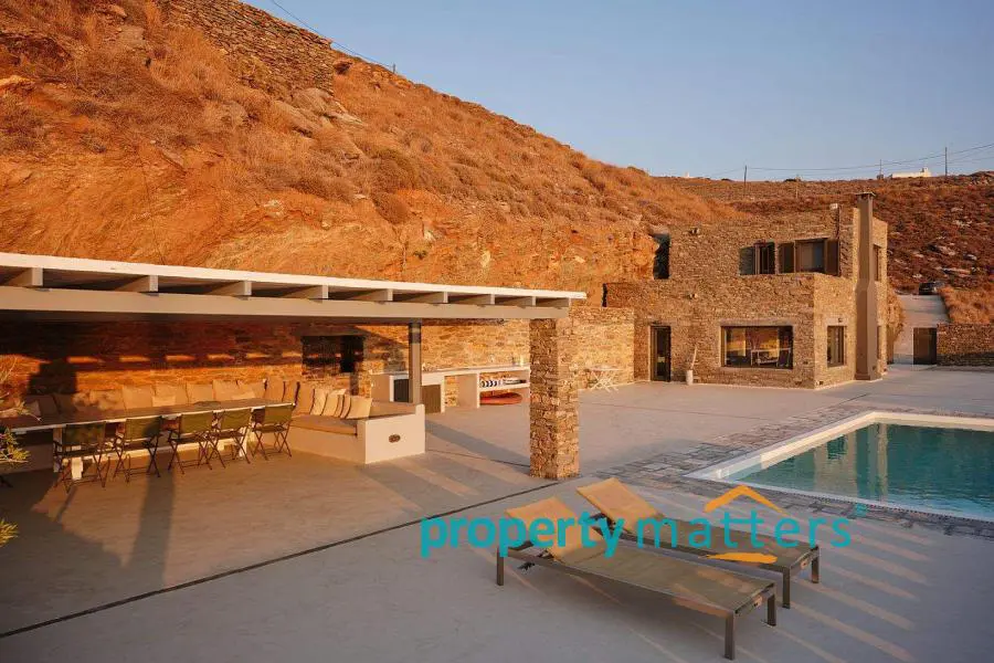 Kea, also known as Tzia, is one of the Cycladic Islands' hidden gems and one of the closest islands to Athens. With its unique charm and scarcity of hotels, Kea offers visitors the chance to rent private houses, most of which are constructed from local stone. The island boasts 45 beaches, many of which are accessible only by boat, making it an ideal destination for relaxation and an unforgettable vacation. Nestled in the Mellisaki area, this villa is a serene retreat just 4 kilometers from the harbor and 2 kilometers from the nearest organized beach, Xyla. Accessible by a dirt road (a 4x4 vehicle is recommended but not necessary), the villa offers a perfect blend of seclusion and convenience. The villa features a spacious living room with a fireplace, a fully equipped open-plan kitchen, and a guest w.c. The first floor houses a luxurious master bedroom suite with a double bed and an en-suite bathroom. Below the living room, you will find four bedrooms with double beds and en-suite bathrooms, as well as one bedroom with two single beds and an en-suite bathroom. Three of these lower-level bedrooms offer stunning sea views. Facilities: - 5 bedrooms with double beds and en-suite bathrooms - 1 bedroom with 2 single beds and an en-suite bathroom - 1 guest w.c. Amenities: - Internet - Air-conditioning in 4 bedrooms and the living room - Ceiling fans in 3 bedrooms and the living room - Mosquito blinds in the bedrooms - Washing machine - Dishwasher - Iron and board - Hobs - Oven - Refrigerator - Espresso machine - 75″ TV (1pc) - TV in 5 bedrooms Outdoor Amenities: - Infinity swimming pool with sea water 43sq.m. - 750 square meters of patio - Dining area for 14 people - Sunbeds - BBQ - Pool shower - Parking for 3 cars This villa in Kea offers a perfect getaway for those seeking a luxurious and tranquil holiday experience.