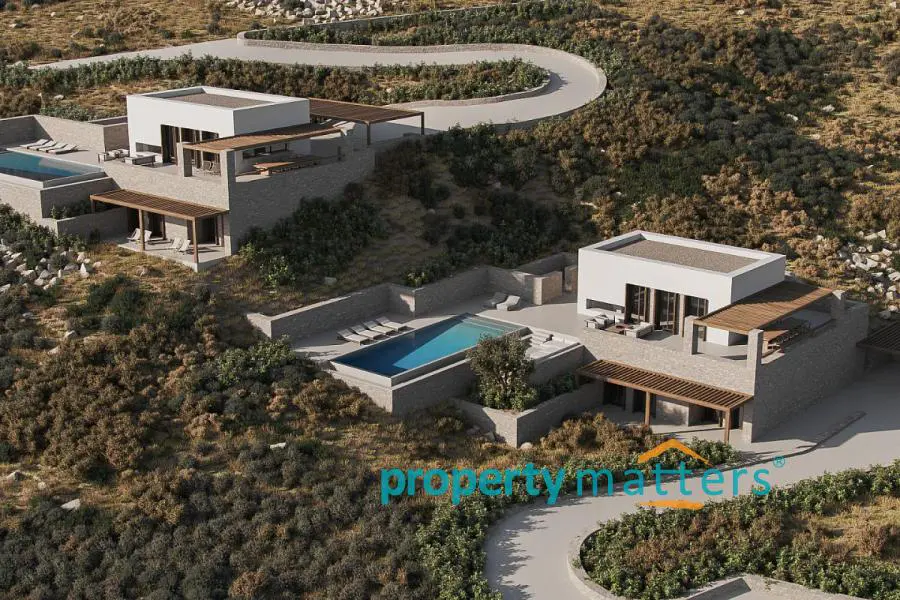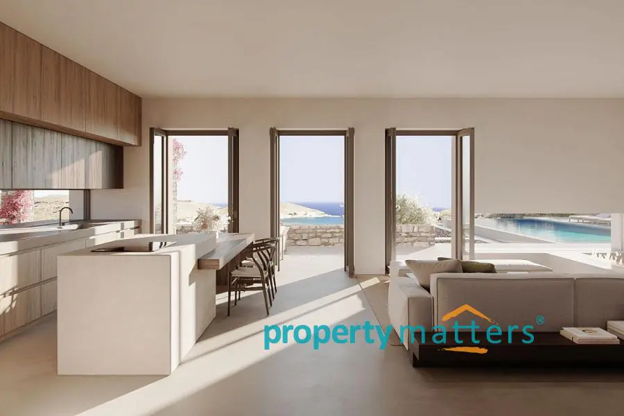 Nestled above one of the most charming ports in the Cyclades, a unique villa sit just 300 meters from Korissia Beach and Marina, perched at 45 meters elevation. Built on a gentle hillside above the ancient port ruins, the development offers panoramic sea views across the Cycladic archipelago. This enclave of four exclusive residences combines contemporary design with timeless island architecture, drawing from local tradition with whitewashed walls, natural stone elements, and terracotta rooftops. Each villa is thoughtfully integrated into the landscape, with seamless indoor-outdoor living that embraces the Aegean light and breeze. Expansive living spaces open directly to private gardens and a stunning infinity pool, while Mediterranean flora surrounds the property with a lush, tranquil character. Villa Features: Plot: 2,000 m² (21,528 ft²) Interior Space: 230 m² (2,475 ft²) across two levels Bedrooms: 4 (2 with en-suite bathrooms) Energy Efficiency: Class A+ Smart Home Integration Outdoor Amenities: 12m x 4m **Infinity Pool Built-in Firepit Lounge Outdoor BBQ & Dining Area (covered) Outdoor Shower & WC Landscaped gardens with native Mediterranean plants Parking for 2 cars & electric vehicle charger Designed with natural elements—stone, marble, water, and light—each villa becomes an expression of modern Aegean elegance. Kitchens and living areas flow effortlessly to outdoor terraces, offering a lifestyle that is both relaxed and refined. €1,700,000 (incl. VAT) Flexible payment plans over 3 years, with estimated delivery by mid-2026. Own your private retreat in Kea and experience elevated island living with world-class design, sea views, and a sense of understated luxury.